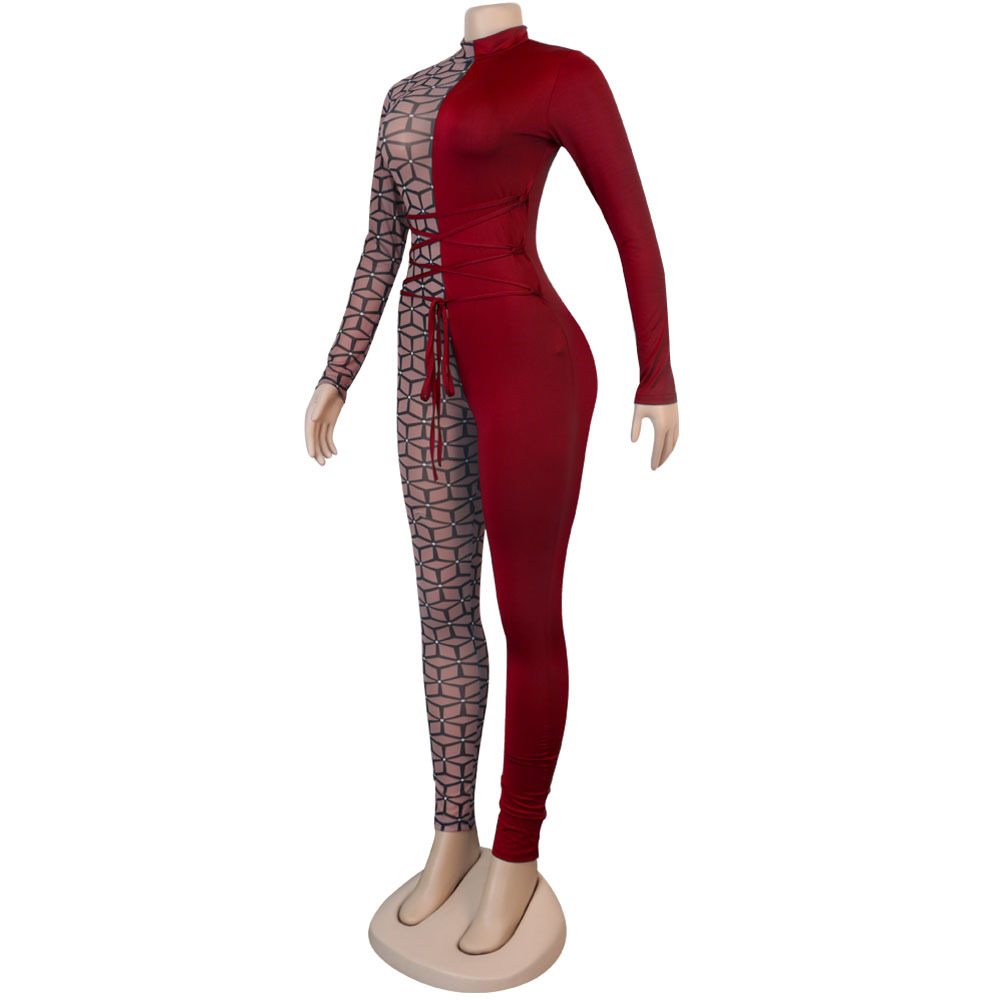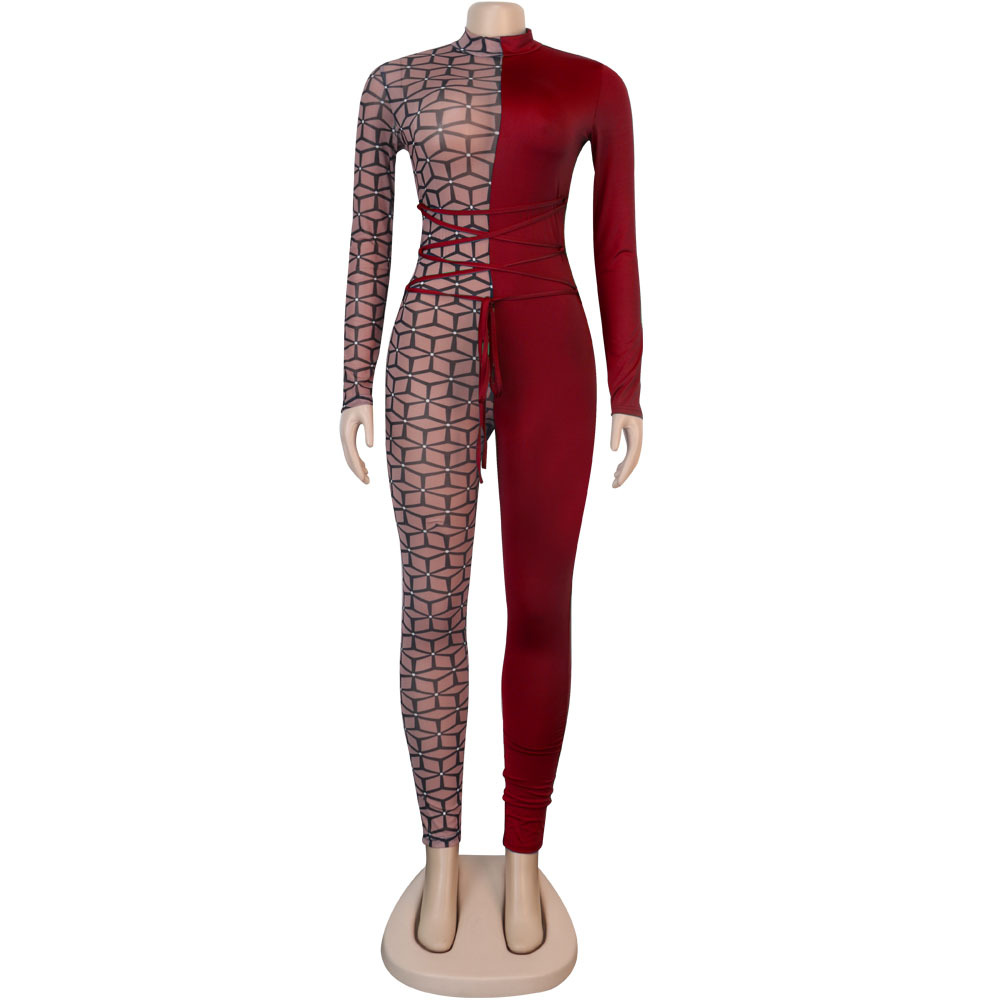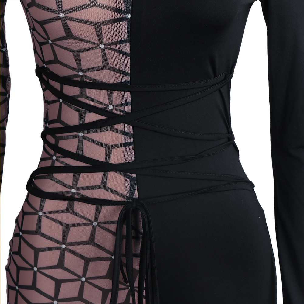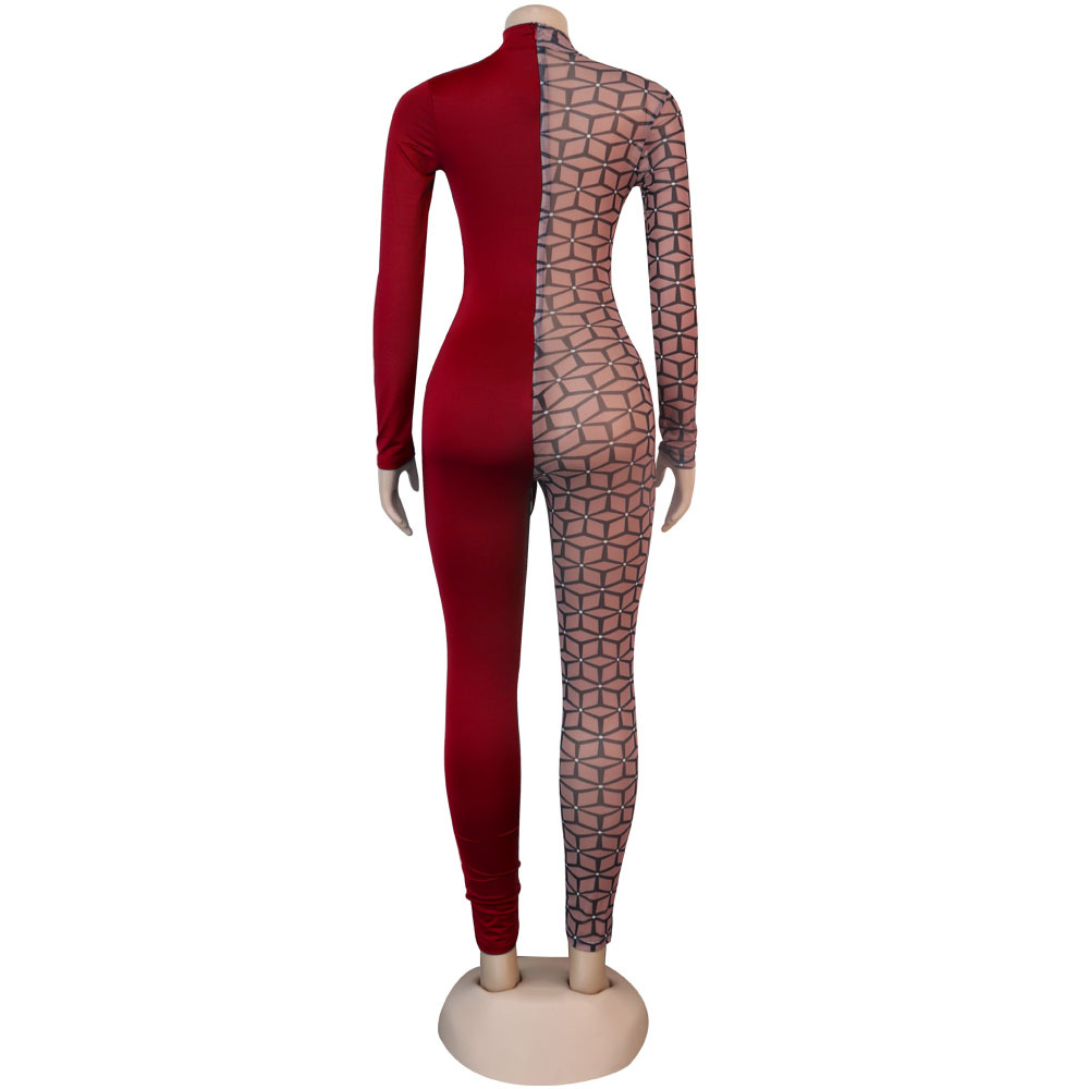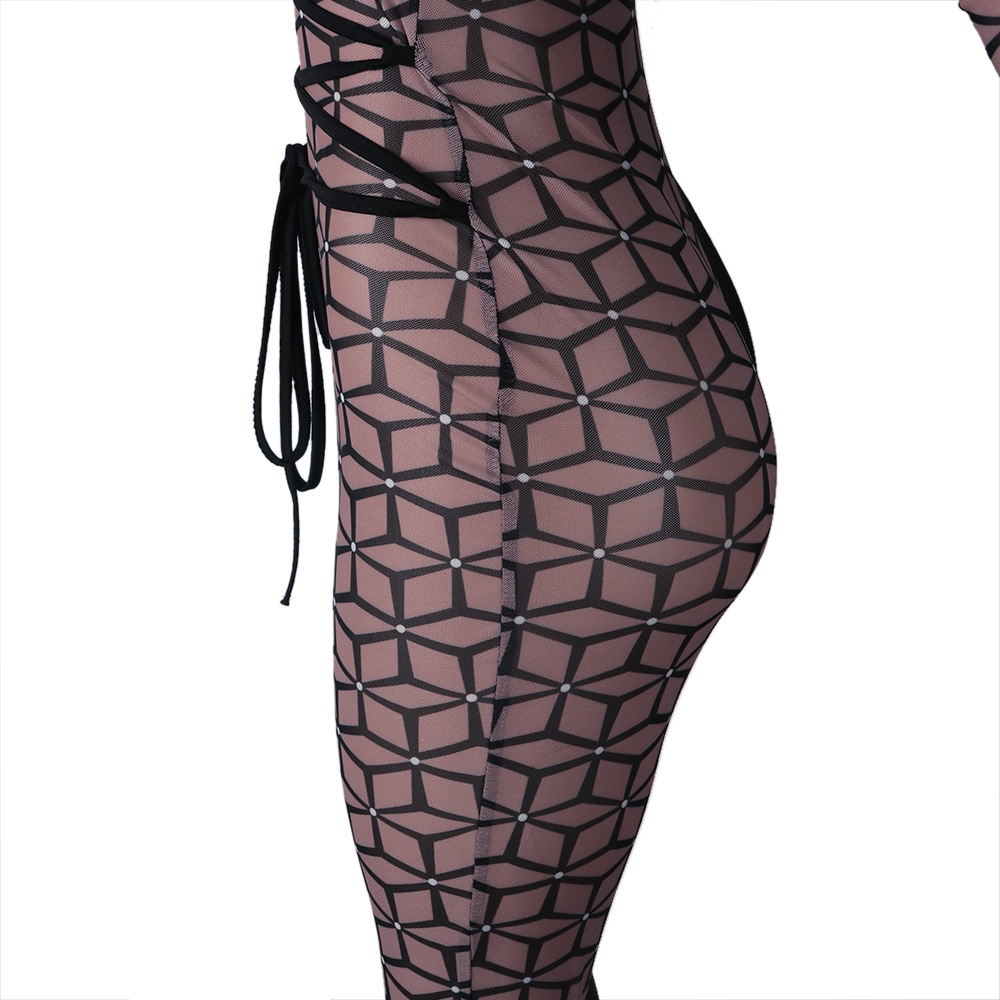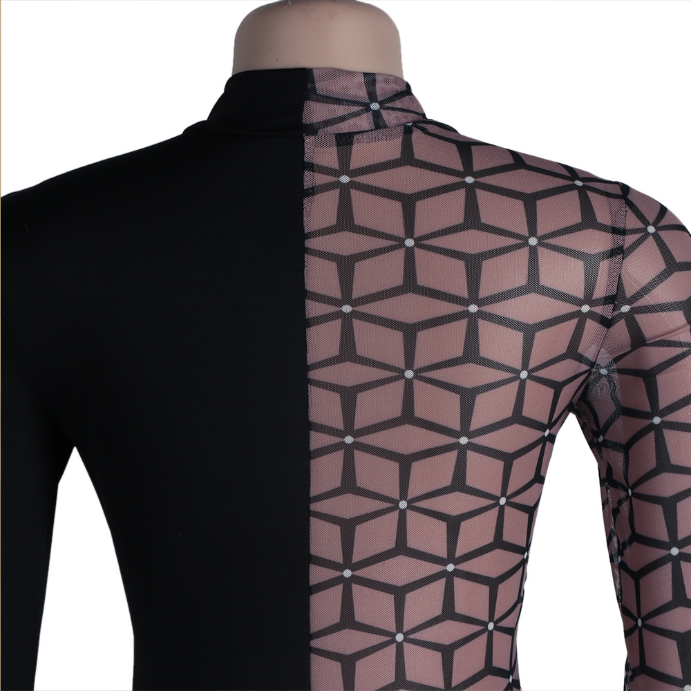 Uniformes de discoteca de una pieza ajustados con cuello redondo alto y costuras estampadas