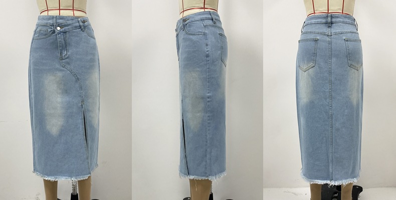 Falda vaquera de cintura alta con abertura frontal deshilachada de longitud media para mujer Falda línea A