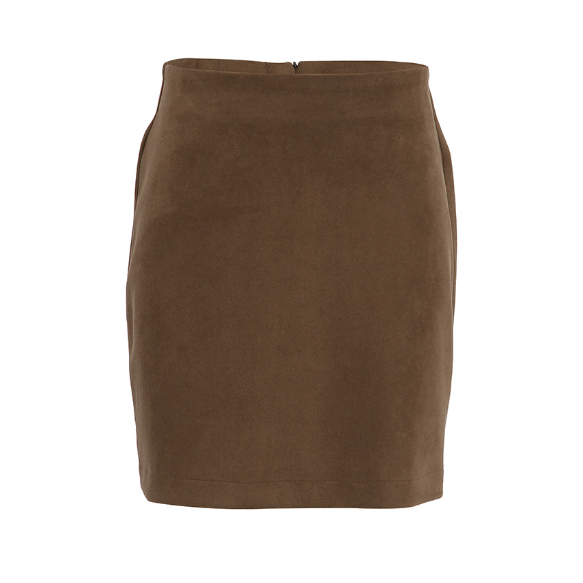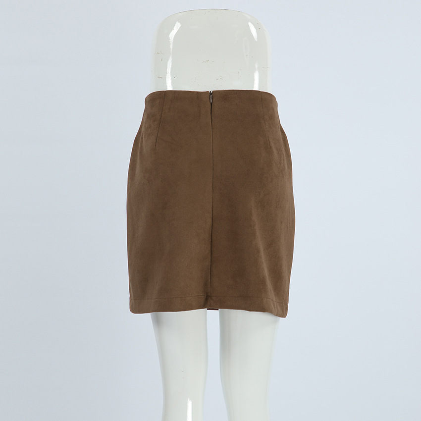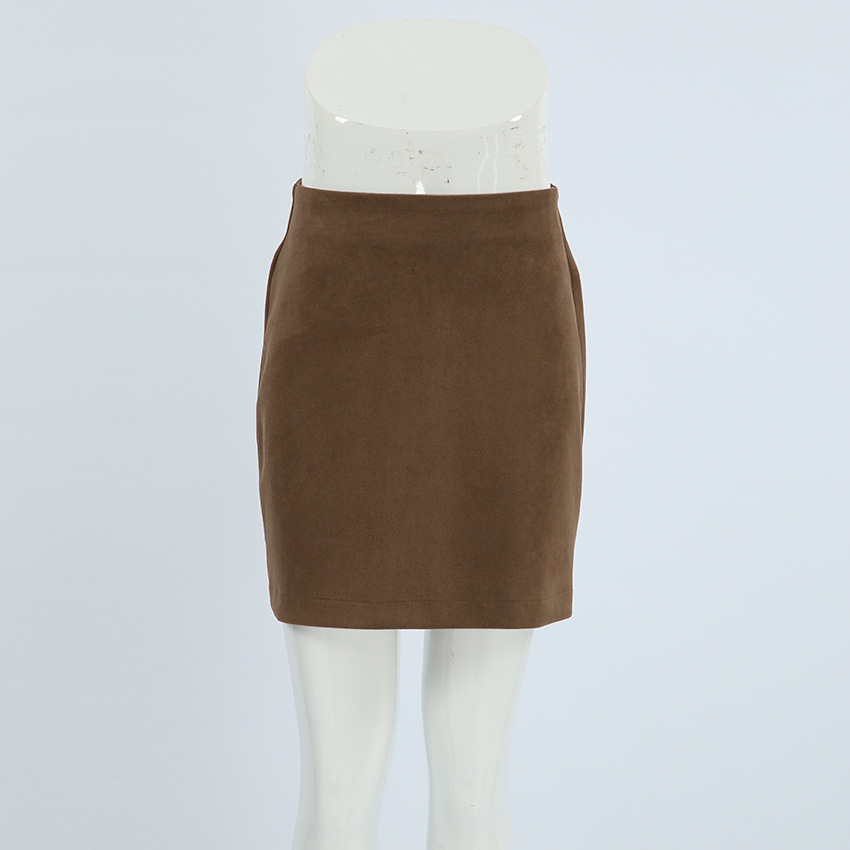 Jupe classique automne-hiver rétro en maille suède marron, taille haute, coupe ajustée, pour femme