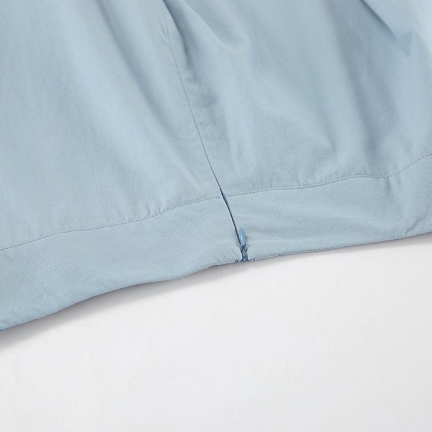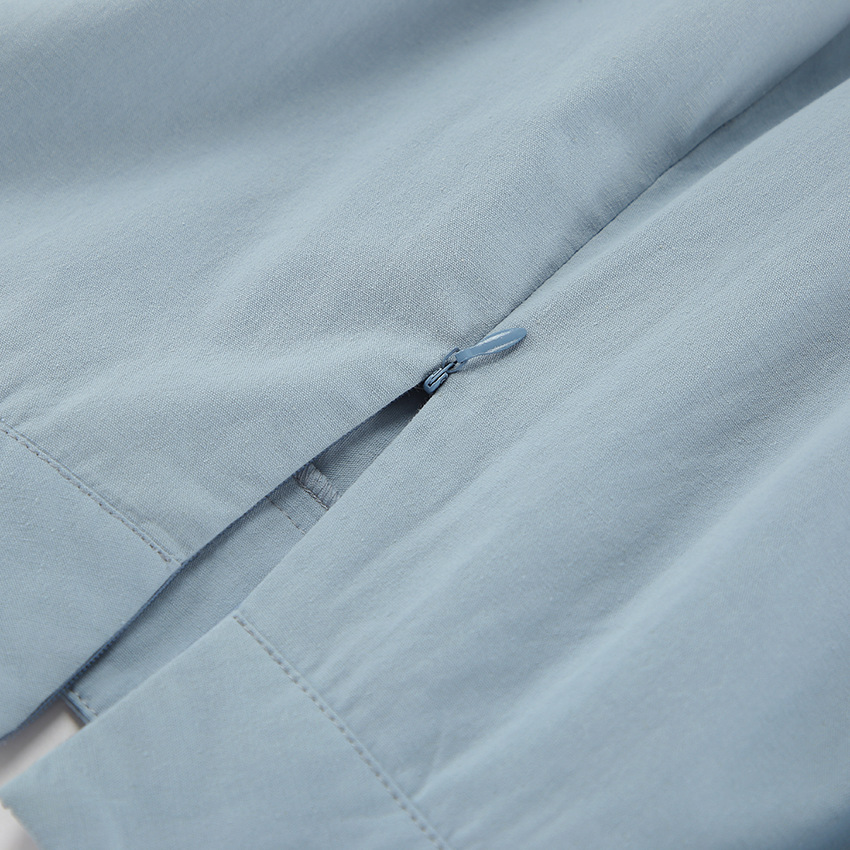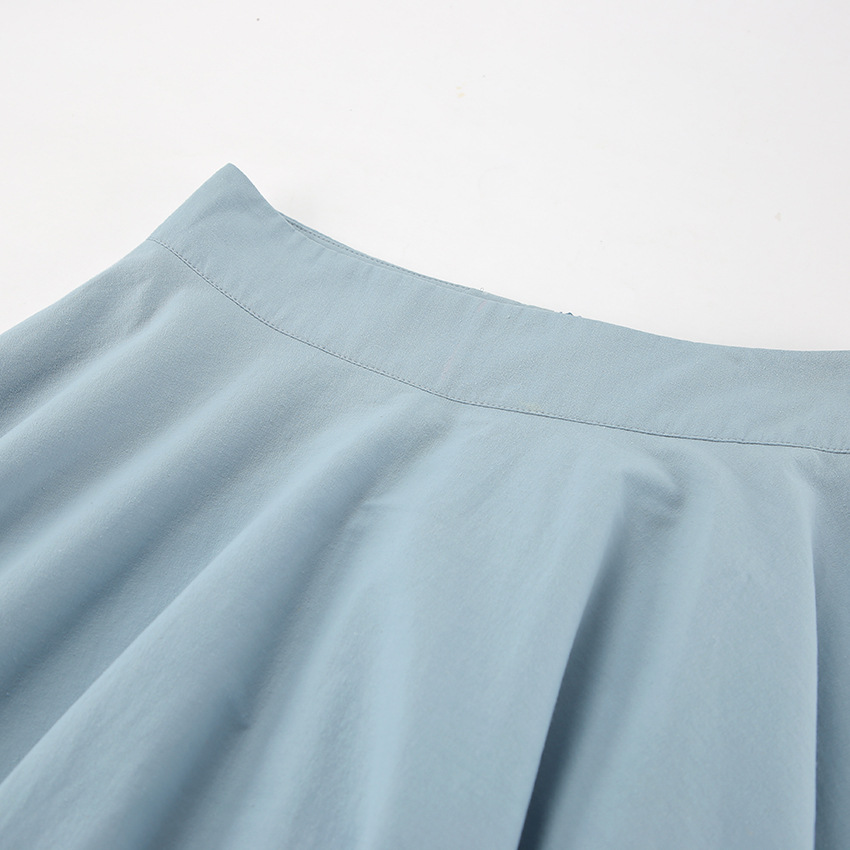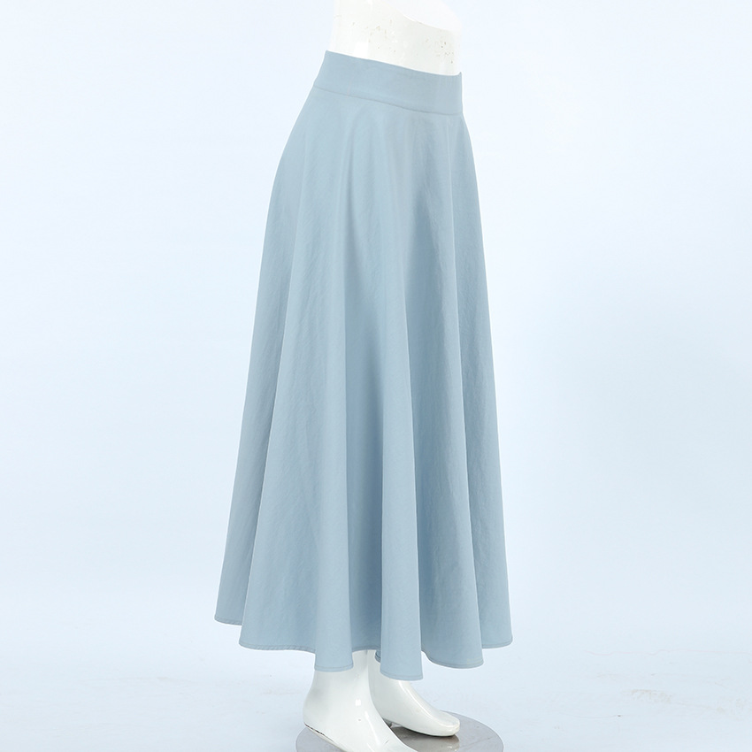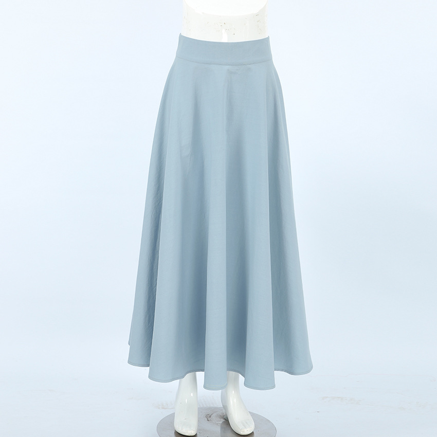 Jupe automne-hiver rétro élégante bleue en coton et lin, ample, taille haute, arrivant à la cheville, style minimaliste et décontracté.
