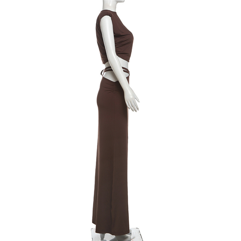 Ensemble automne-hiver sexy composé d'un haut court sans manches et d'une jupe unie taille basse.