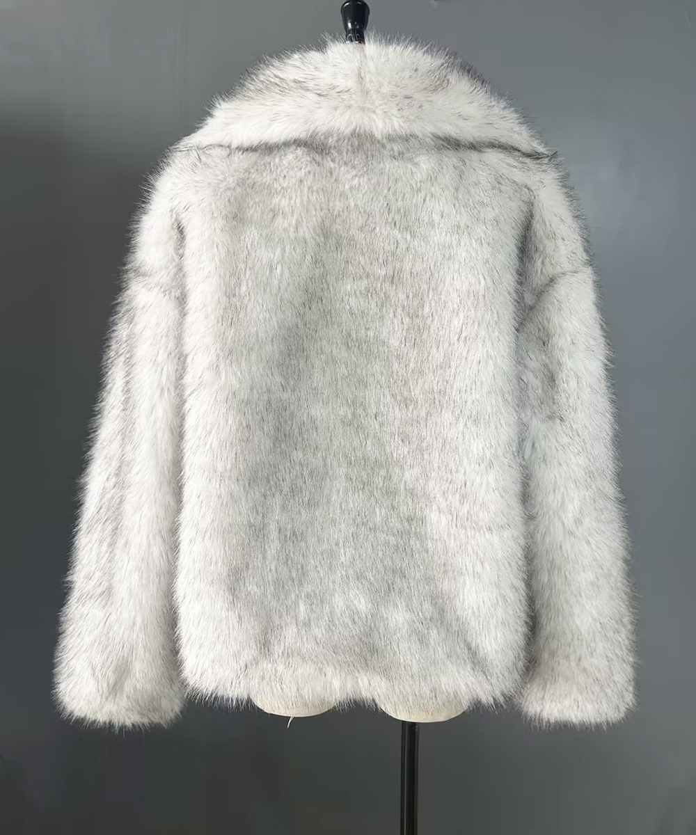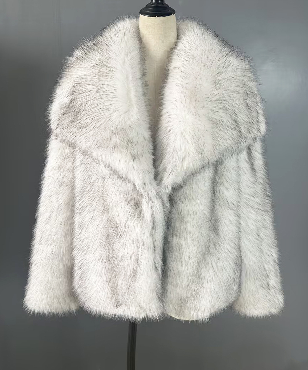Manteau d'hiver pour femme, grand col, en fausse fourrure chaude, imitation renard.