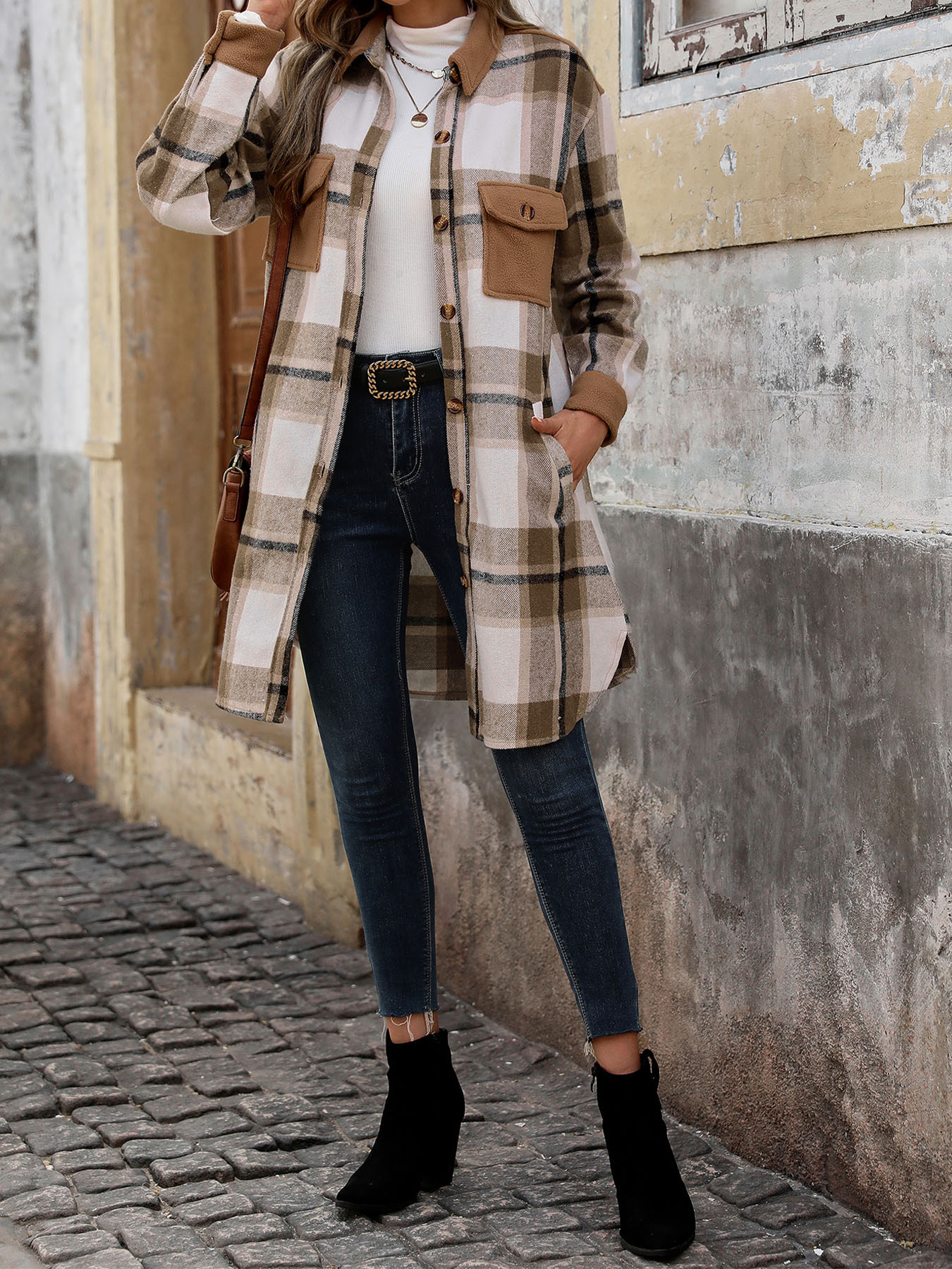 Manteau long à carreaux brossés pour femme, automne-hiver