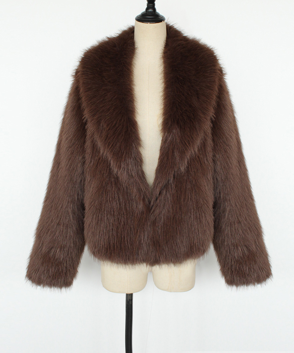 Manteau d'hiver femme automne-hiver à col rond, épais, effet fourrure peluche, respectueux de l'environnement