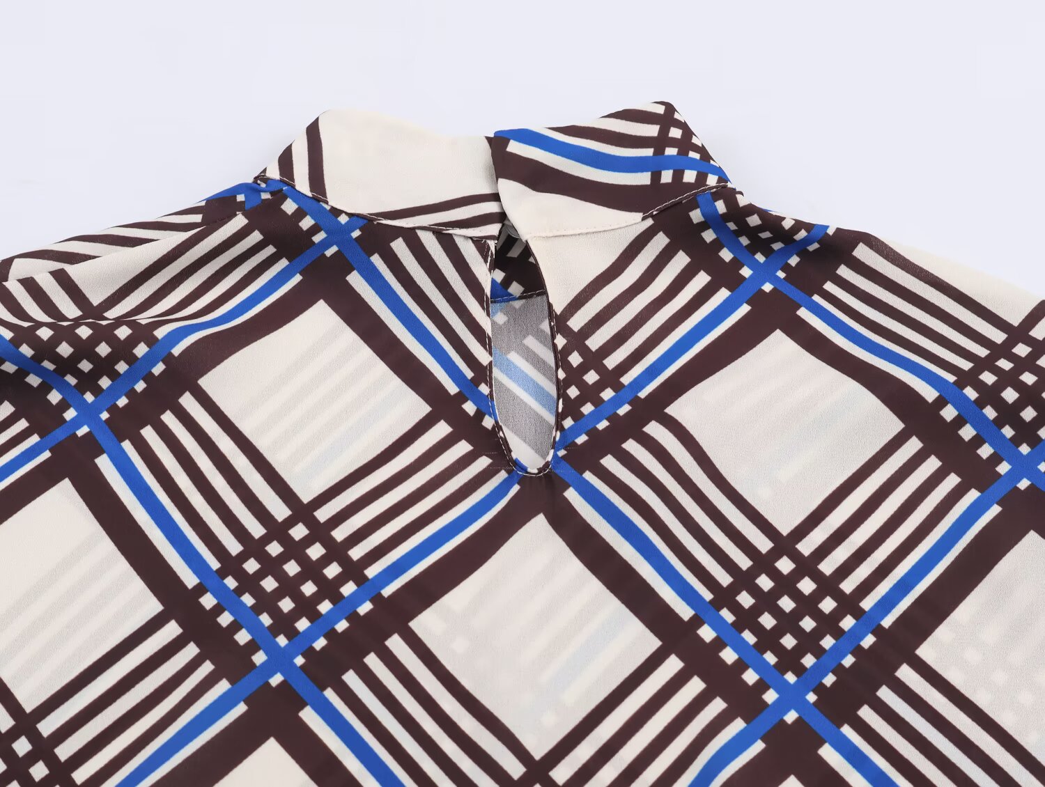 Vêtements d'automne pour femmes - Chemise à col roulé à carreaux tendance