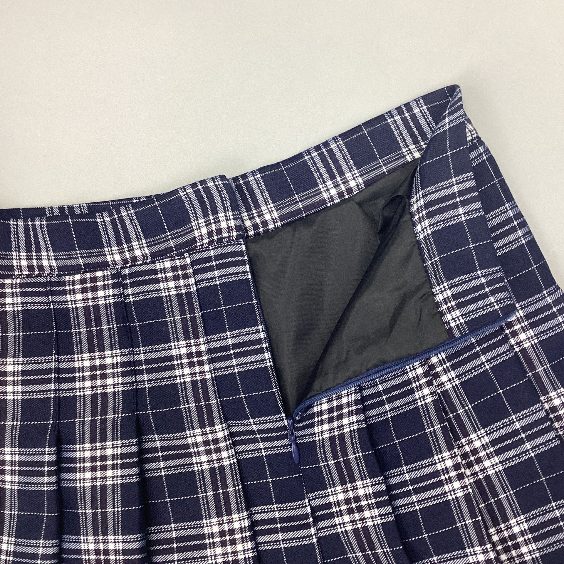 Jupe courte plissée taille haute, mignonne et épicée, à carreaux bleus, coupe trapèze.