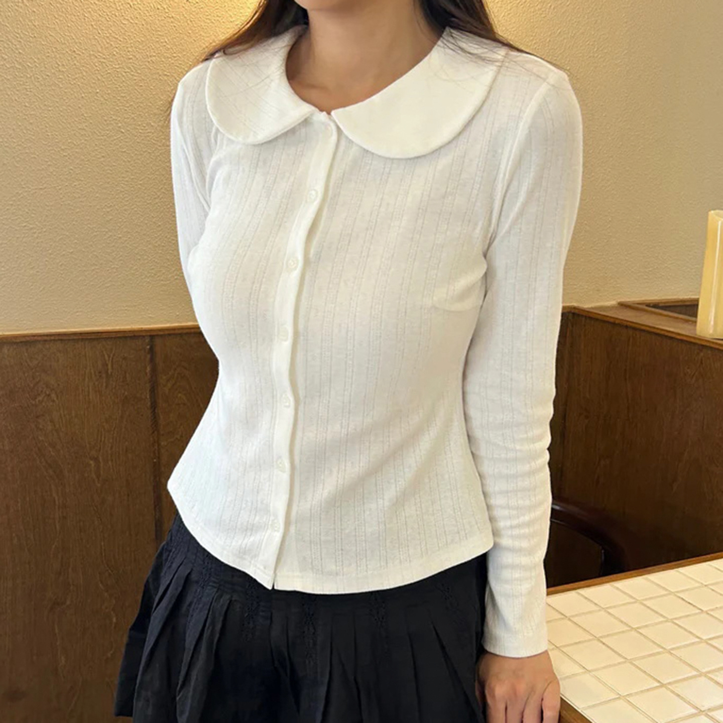 Arrival Sweet White Doll Collar Knitted Cardigan Girly Basic Texture Shirt