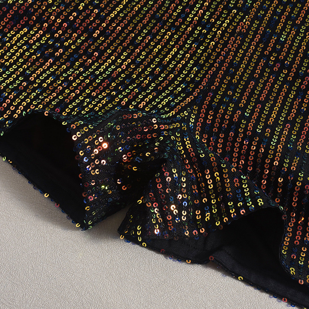 Autumn Christmas Element Long Sleeve Cutout Half Turtleneck Sequin Stitching Mesh Jumpsuit
