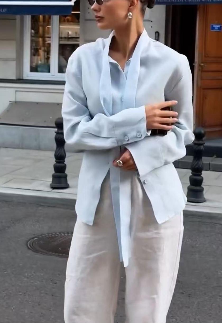 Autumn French Tied Cotton Linen Light Top Shirt Women