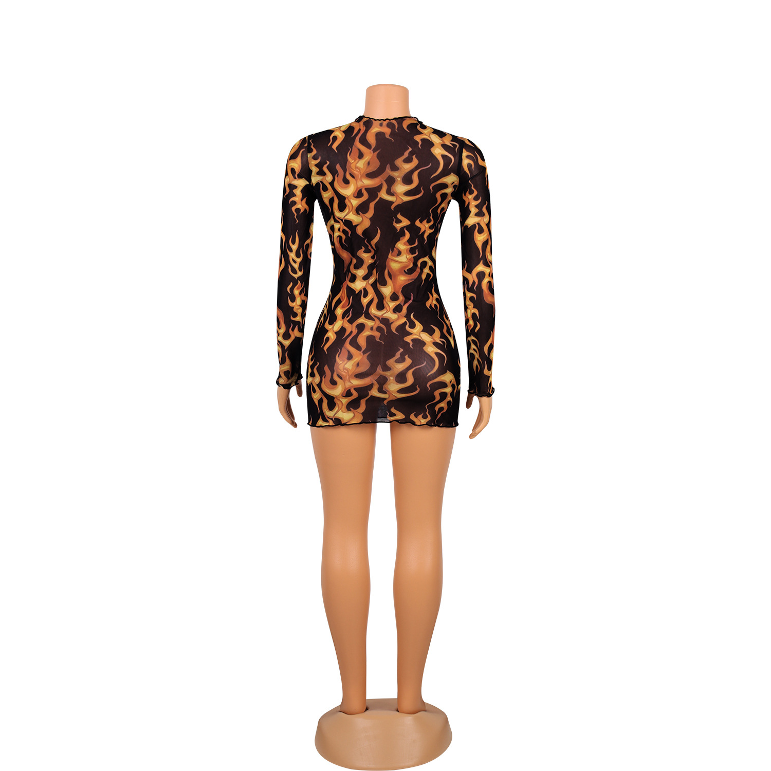 Autumn Sexy Mesh Floral Print Short Sleeve Dress Short Dress Women
