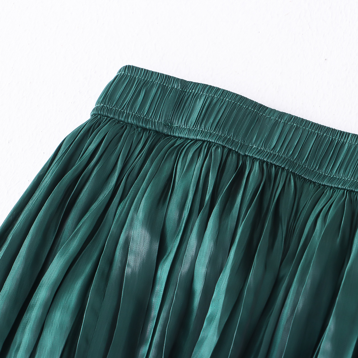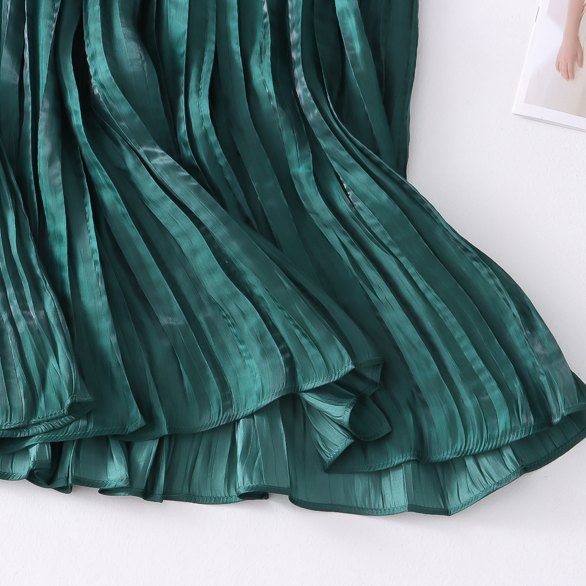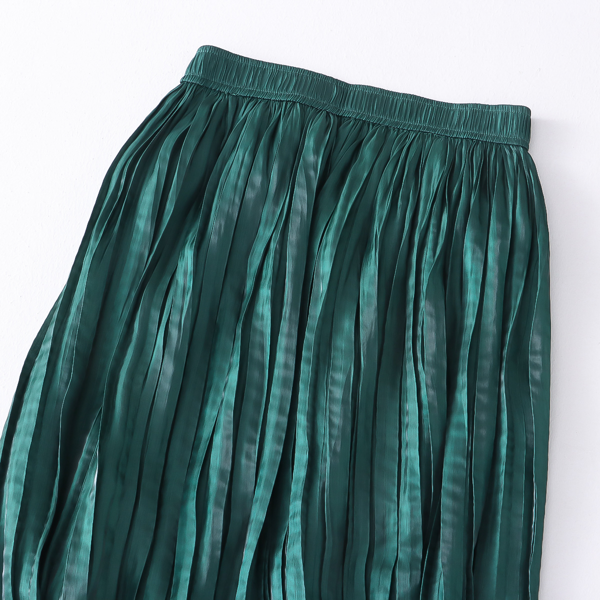 Autumn Willow Pleated Skirt Women Korean High Waist Satin Elegant Big Hem A line Skirt