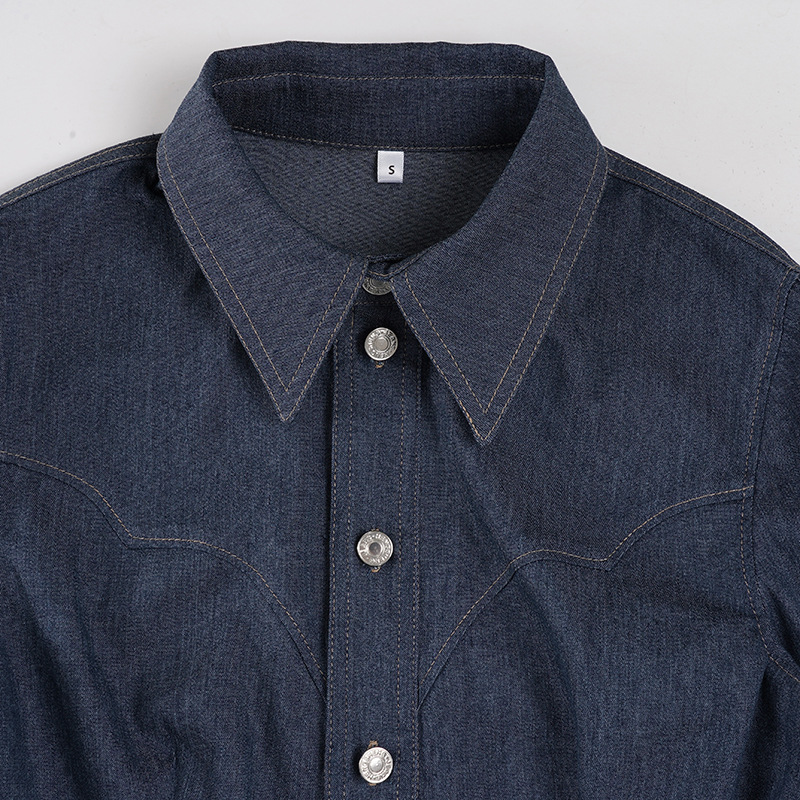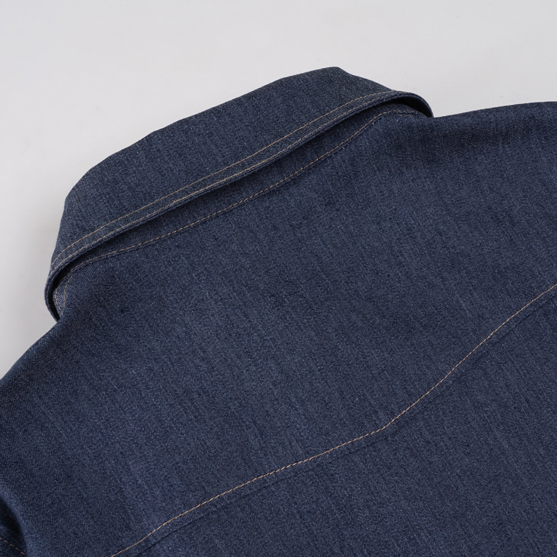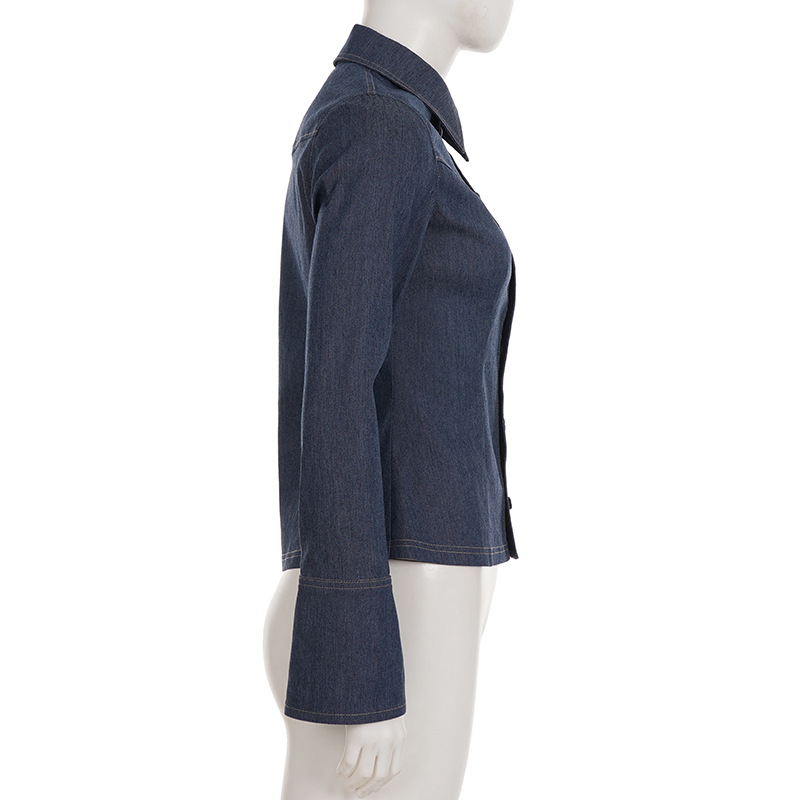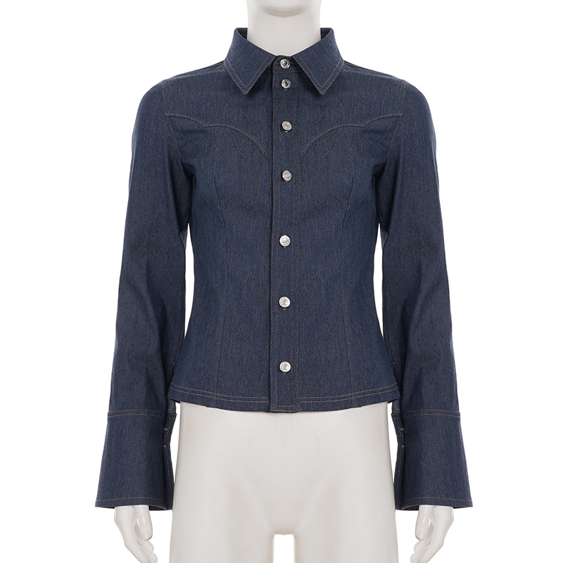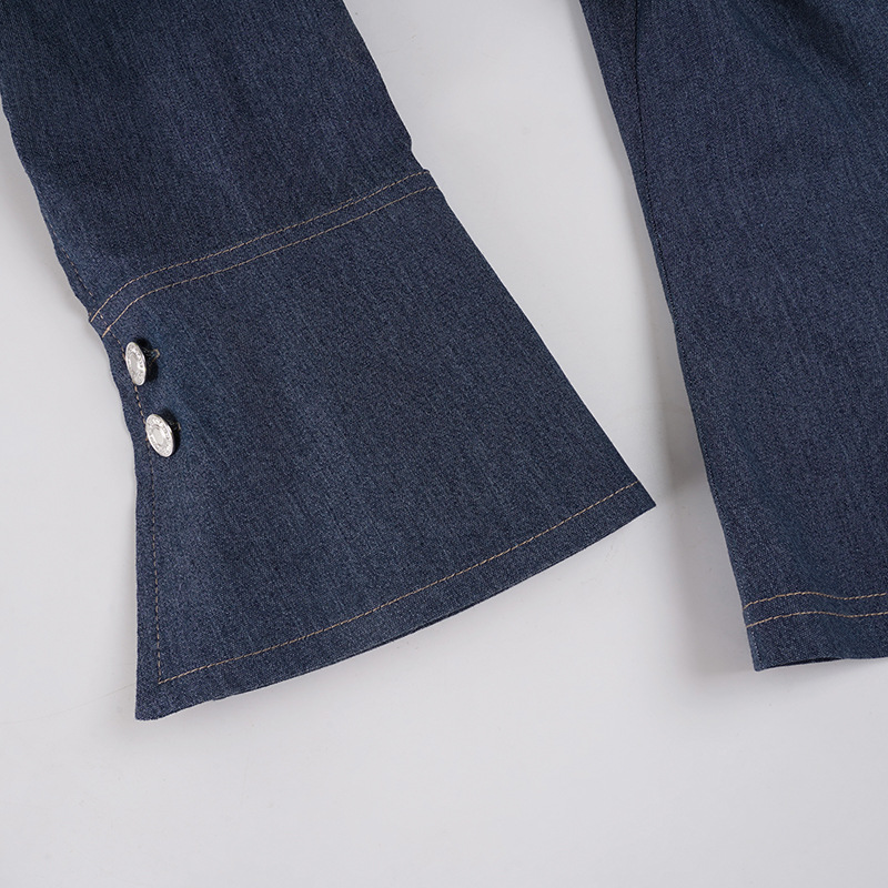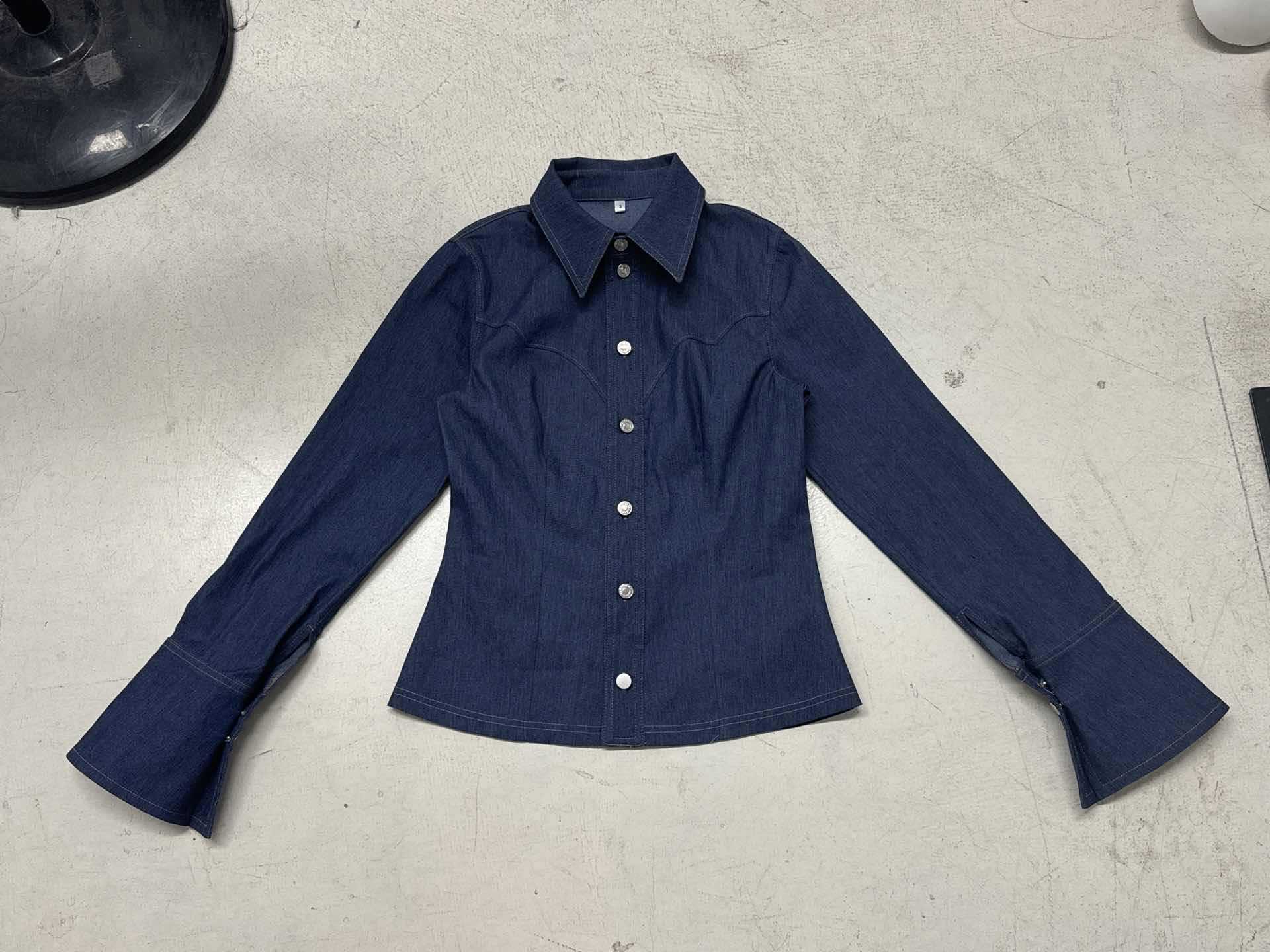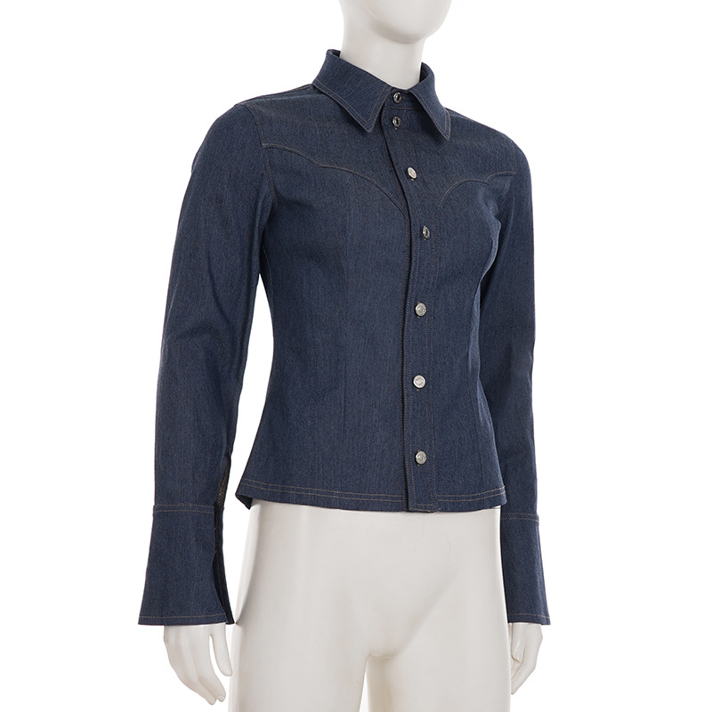 Autumn Winter Blue Split Shirt Women's Bandage Dress Inner Collared Loose Breasted Jacket