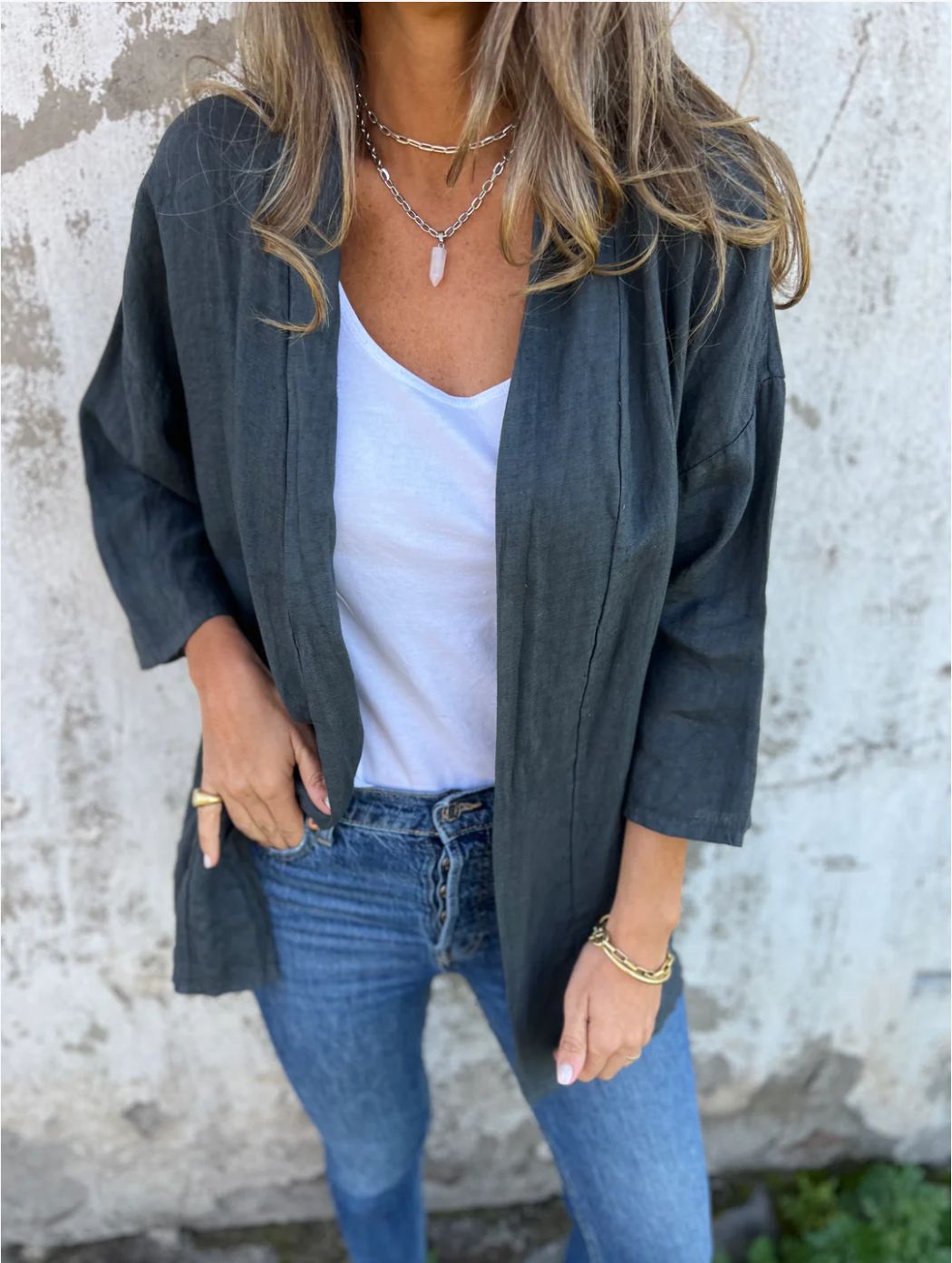 Autumn Winter Cardigan Solid Color Casual Loose Pockets Top Women
