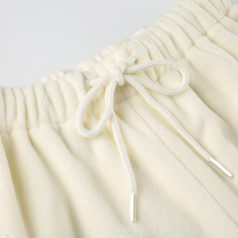 Autumn Winter Comfortable Warm Polar Fleece Elastic Waist Drawstring Design Solid Color All Matching Casual Trousers