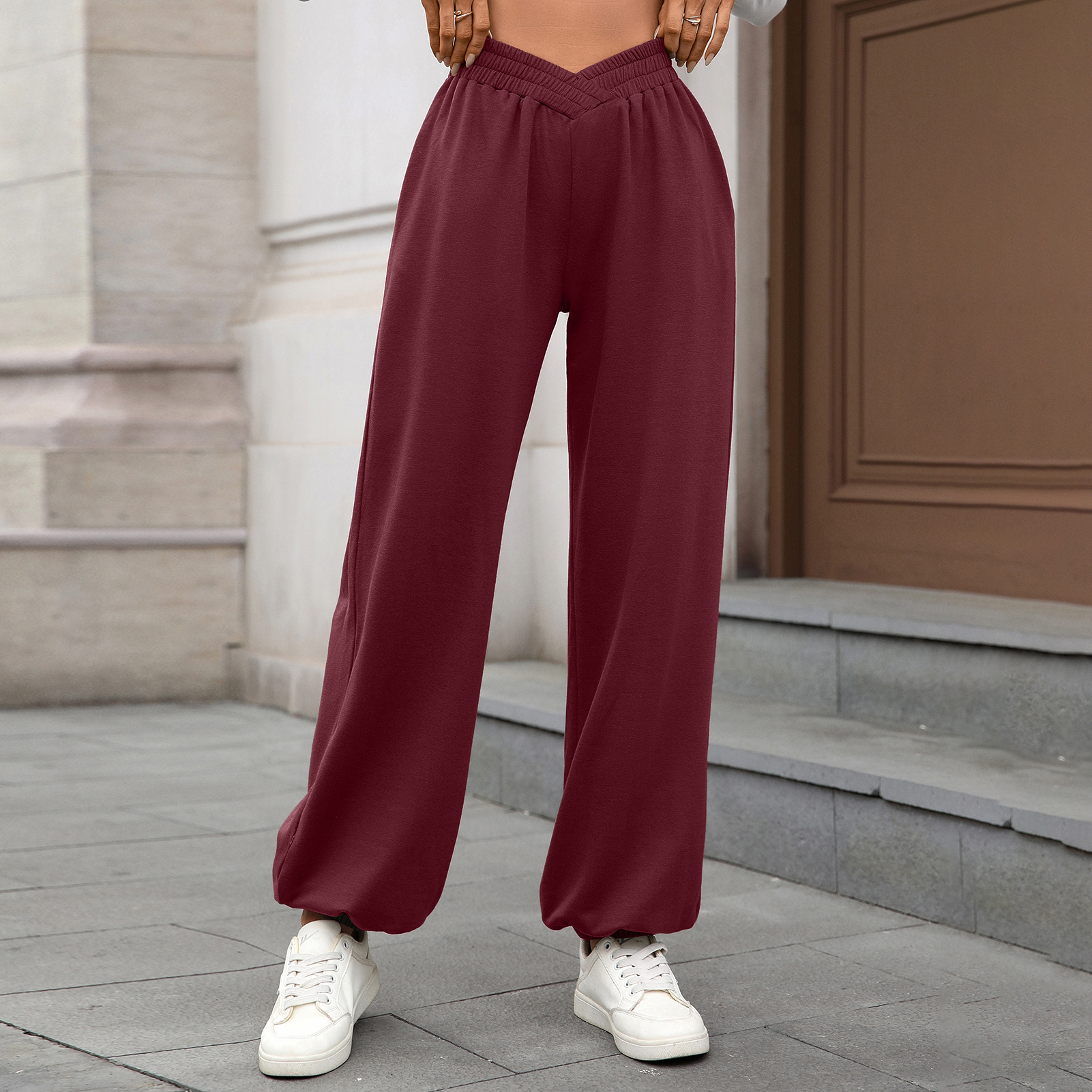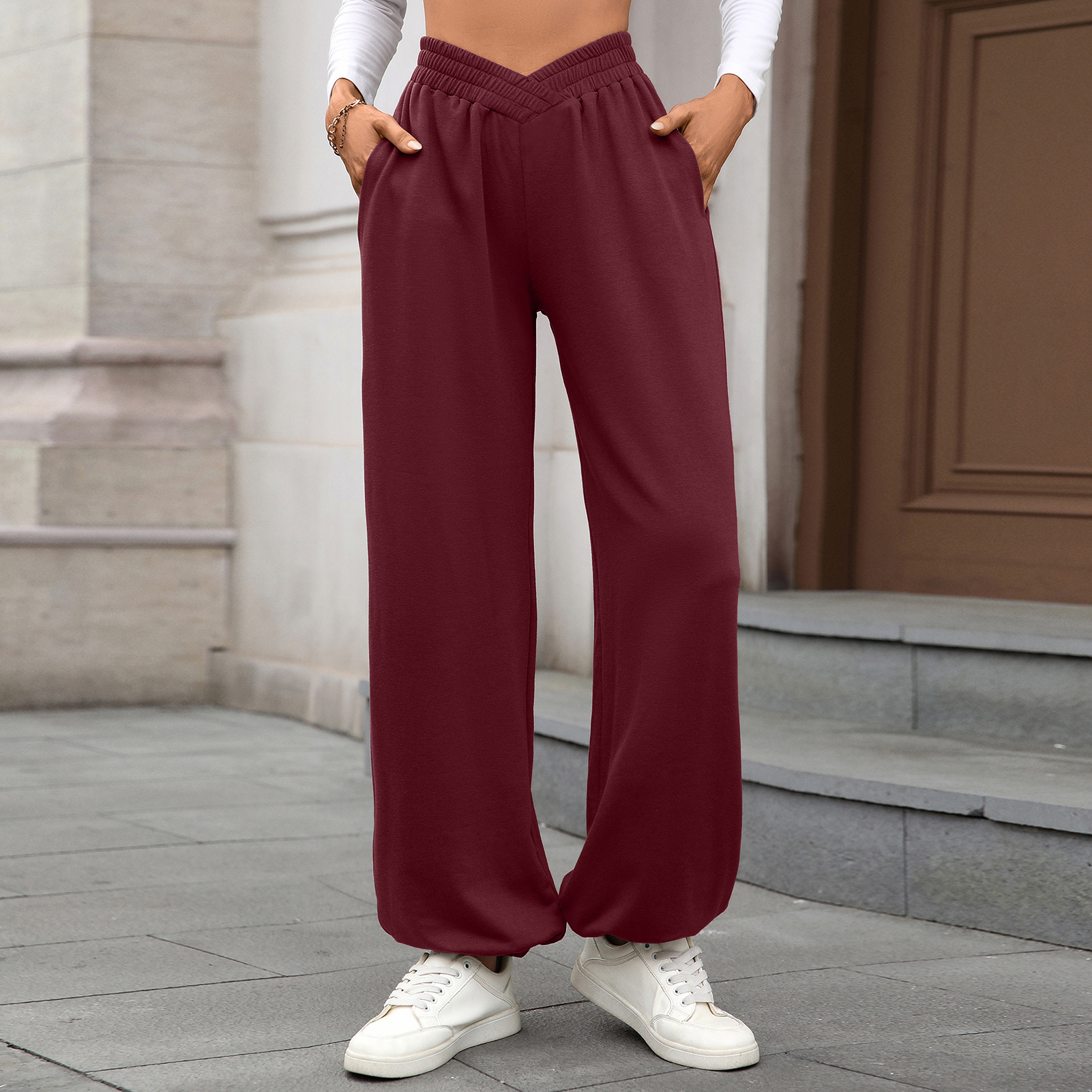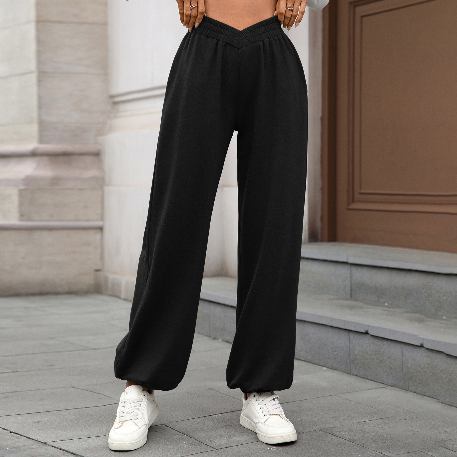 Autumn Winter Elastic Waist with Pocket Ankle Tied Loose Casual Women Pants