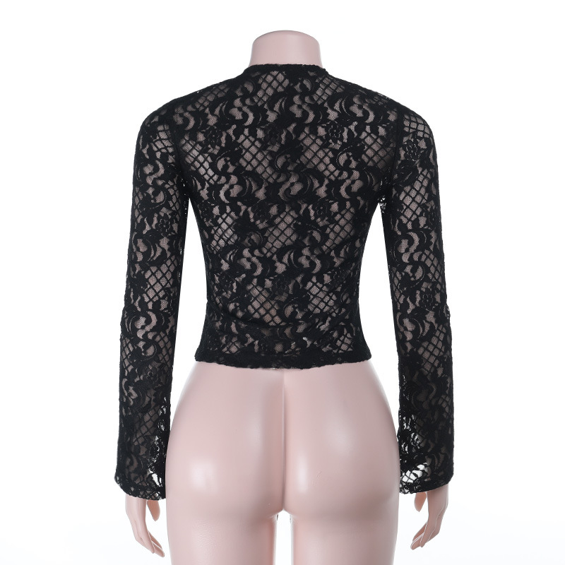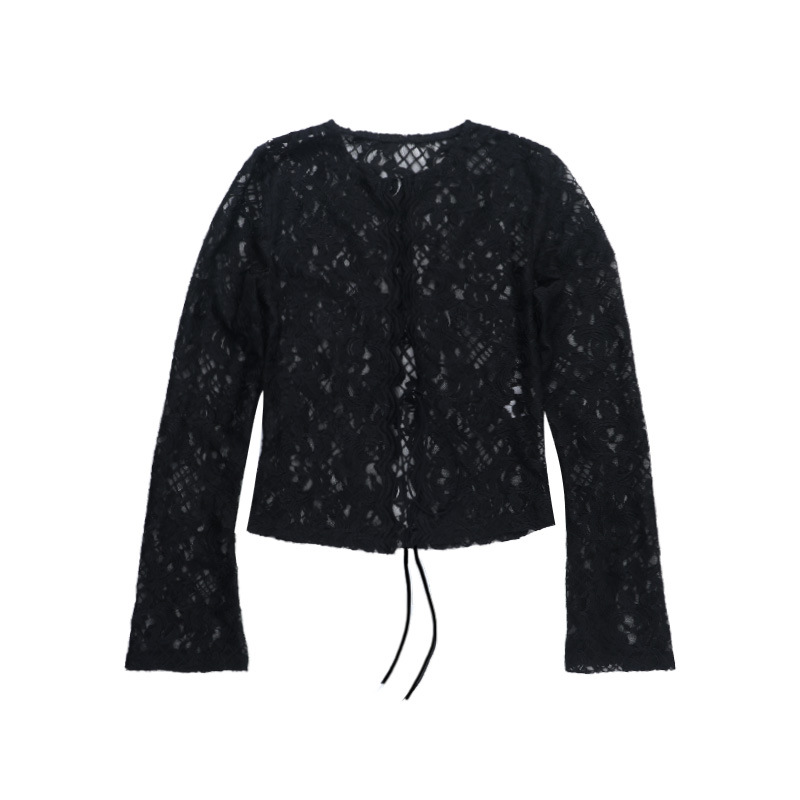 Autumn Winter Lace up Sexy Long Sleeved Top for Women