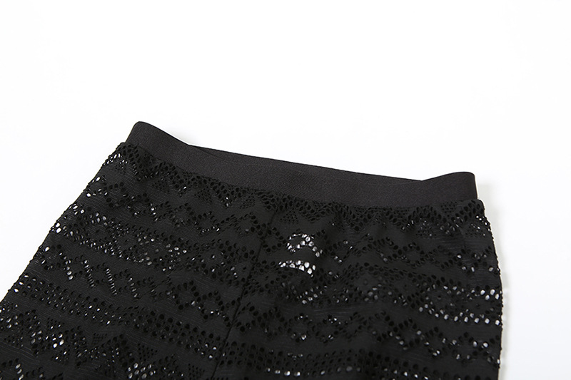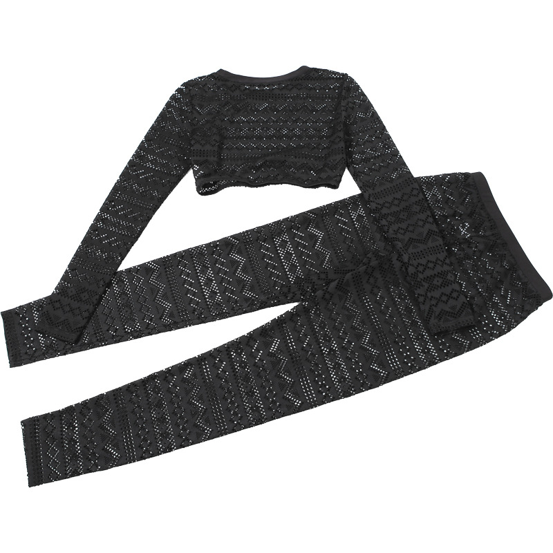 Autumn Winter Sexy Crop Top Short Top High Waist Striped Hollow Out Cutout out Trousers Set Women