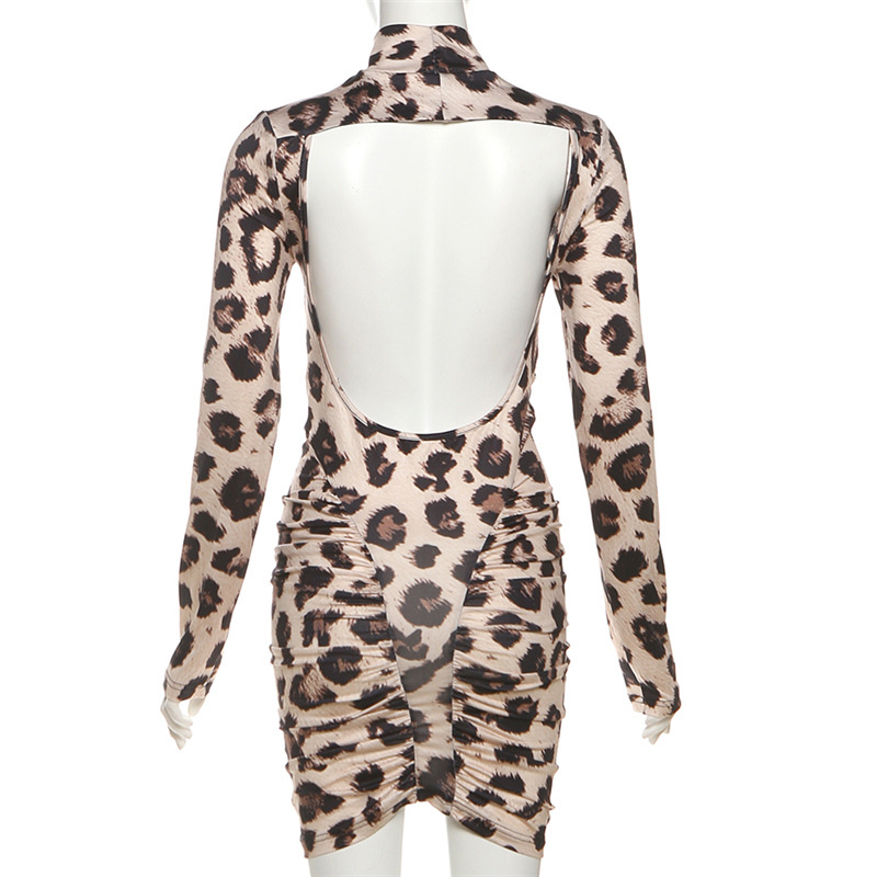 Autumn Winter Sexy Slim Fit Backless Half Turtleneck Pleated Solid Color Sheath Dress for Women