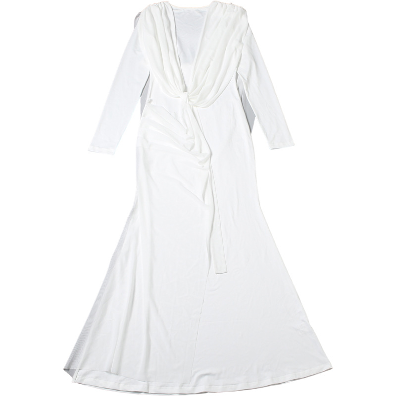 Autumn Winter Sexy Slim Fit Irregular Asymmetric Mesh Maxi Dress Solid Color Dress for Women