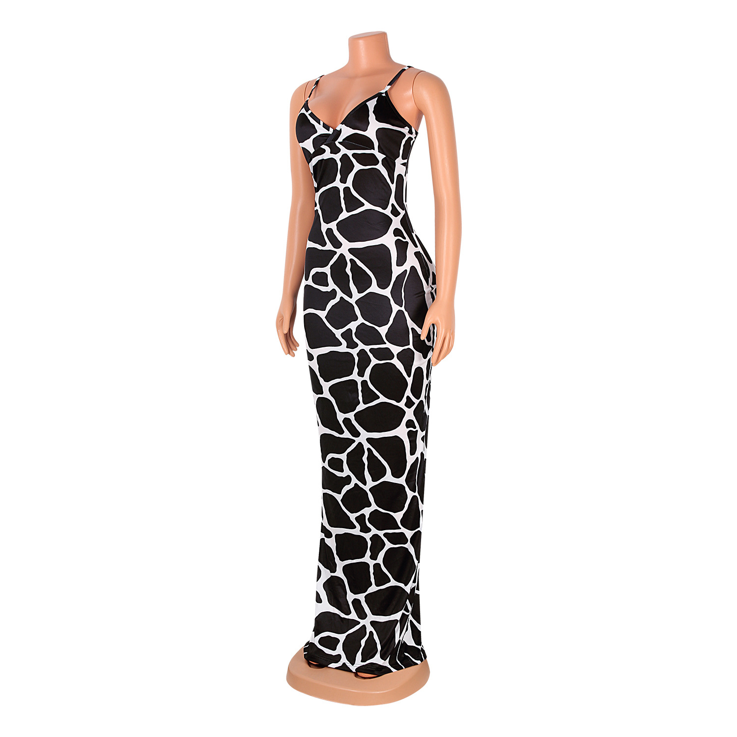 Autumn Winter Sexy V neck Strap Dress Digital Printing Women Dress
