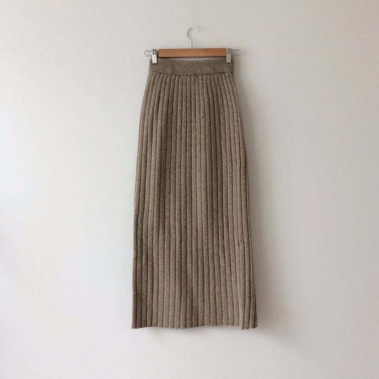 Autumn Winter Side Slit Sexy Design High Waist Slimming Pencil Skirt Knitted Half Wool Dress