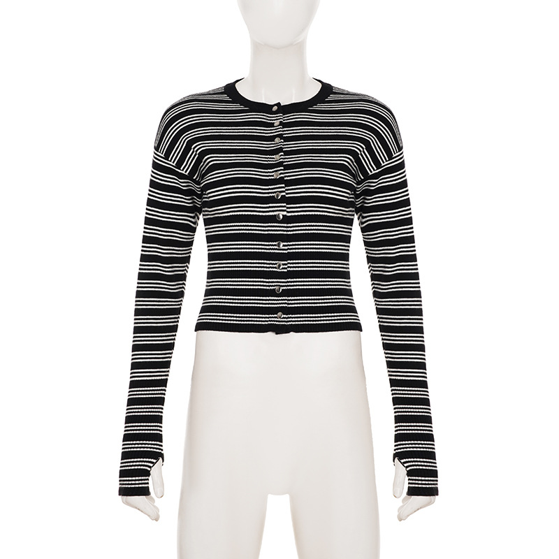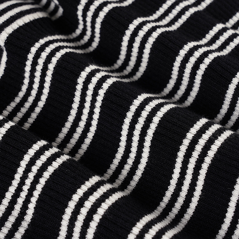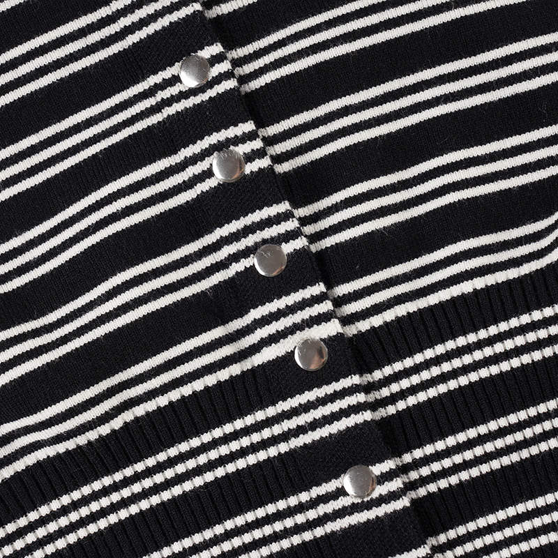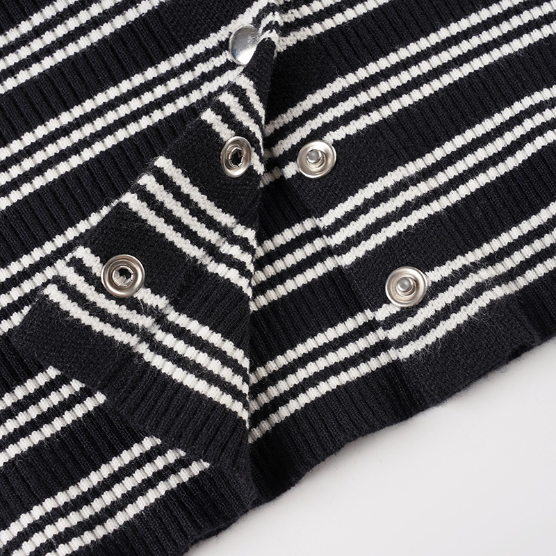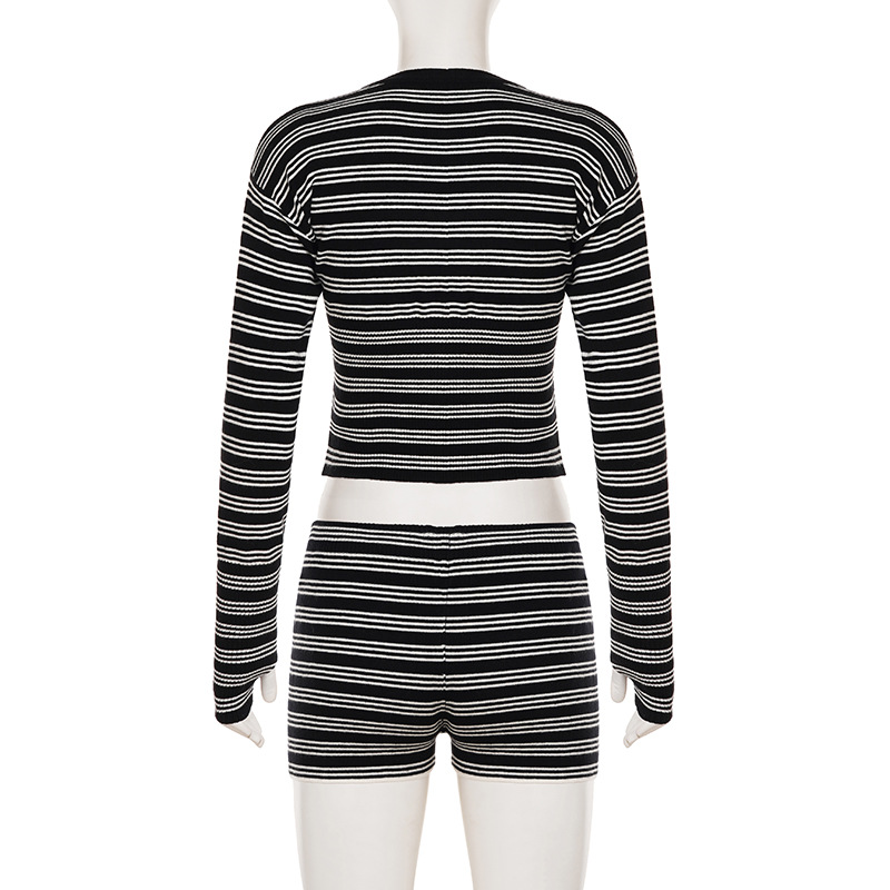 Autumn Winter Striped Set Waist Buckle Knitted Cardigan Coat Shorts Woolen Two Piece Set