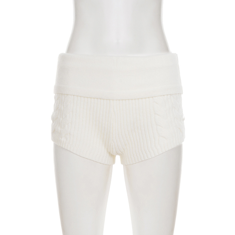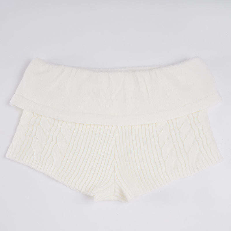Autumn Winter Suit Solid Color Twist Single Breasted Lantern Sleeve Sweater Coat Matching Woolen Shorts Two Piece Sets
