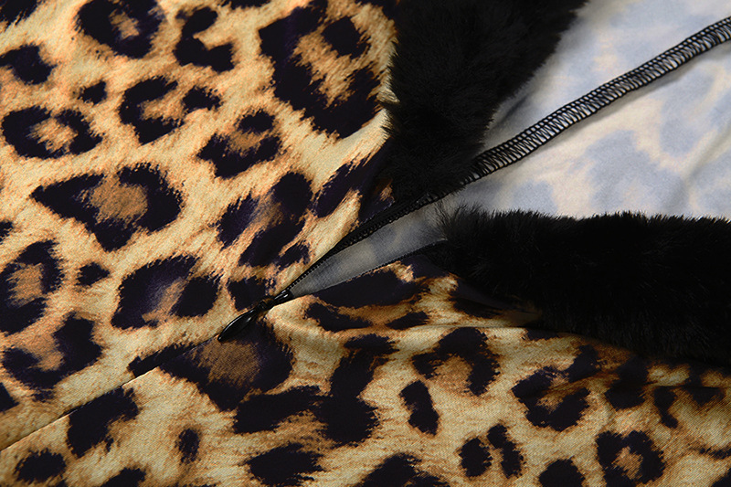 Autumn Winter Women Clothing Sexy Leopard Print V neck Plush Slim Fit Patchwork Long Sleeve Jumpsuit