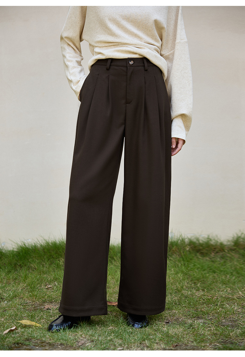 Autumn Winter Wool Straight Leg Pants Women High Waist Pleated Crisp Embellished Wide Leg Pants All Matching Slimming Warm Trousers