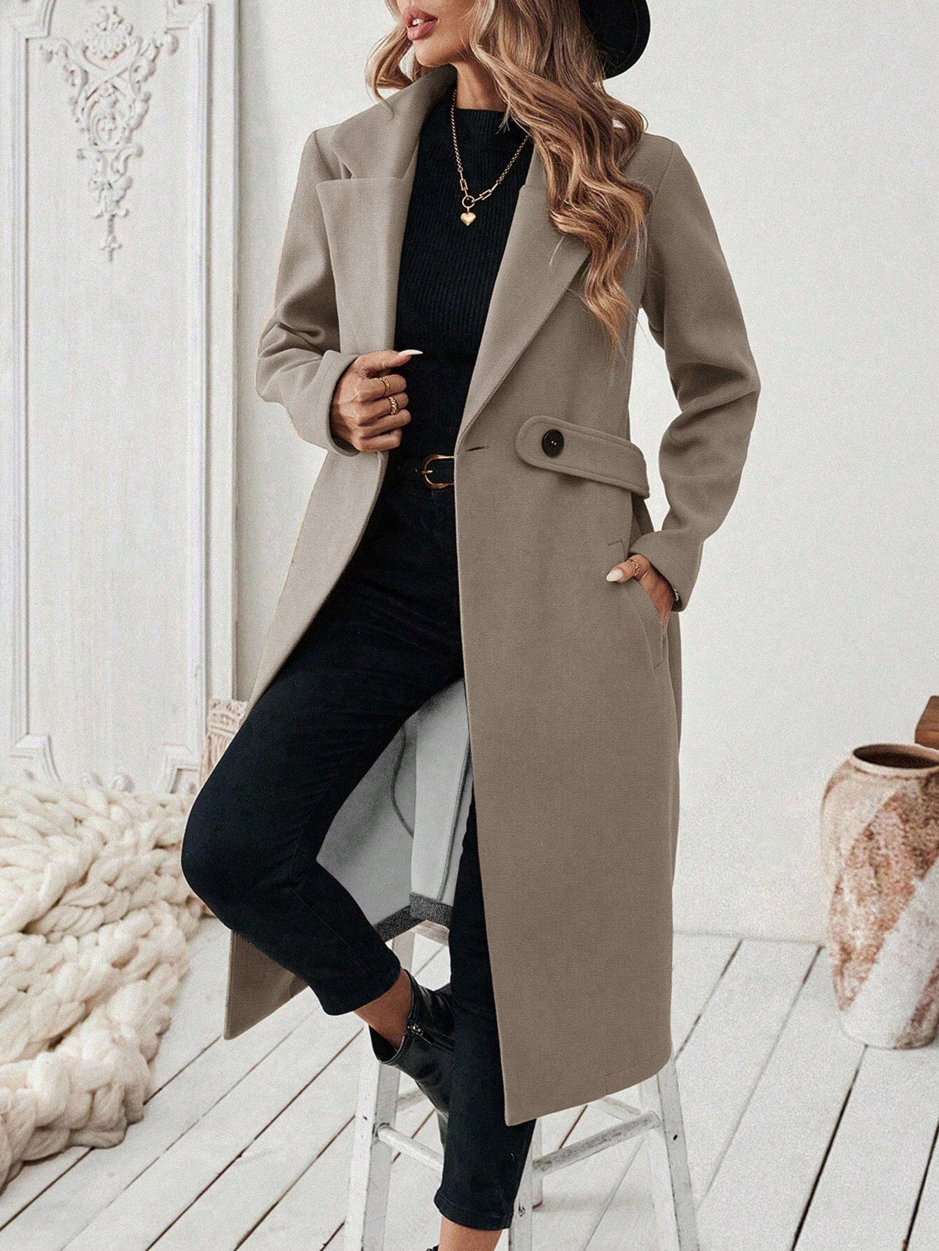 Autumn Winter Woolen Coat Long Collared Slim Fit Slimming Women Woolen Coat