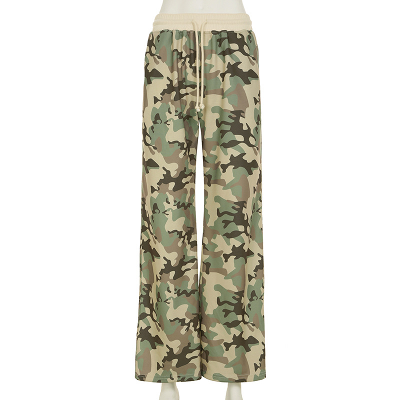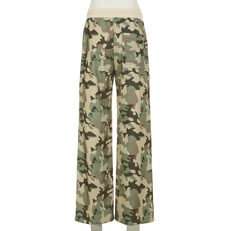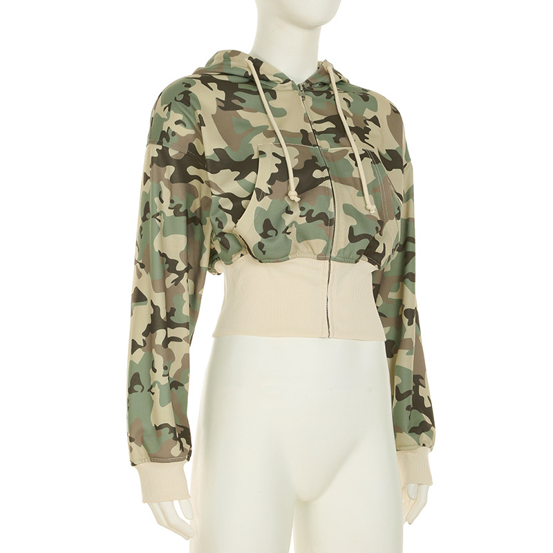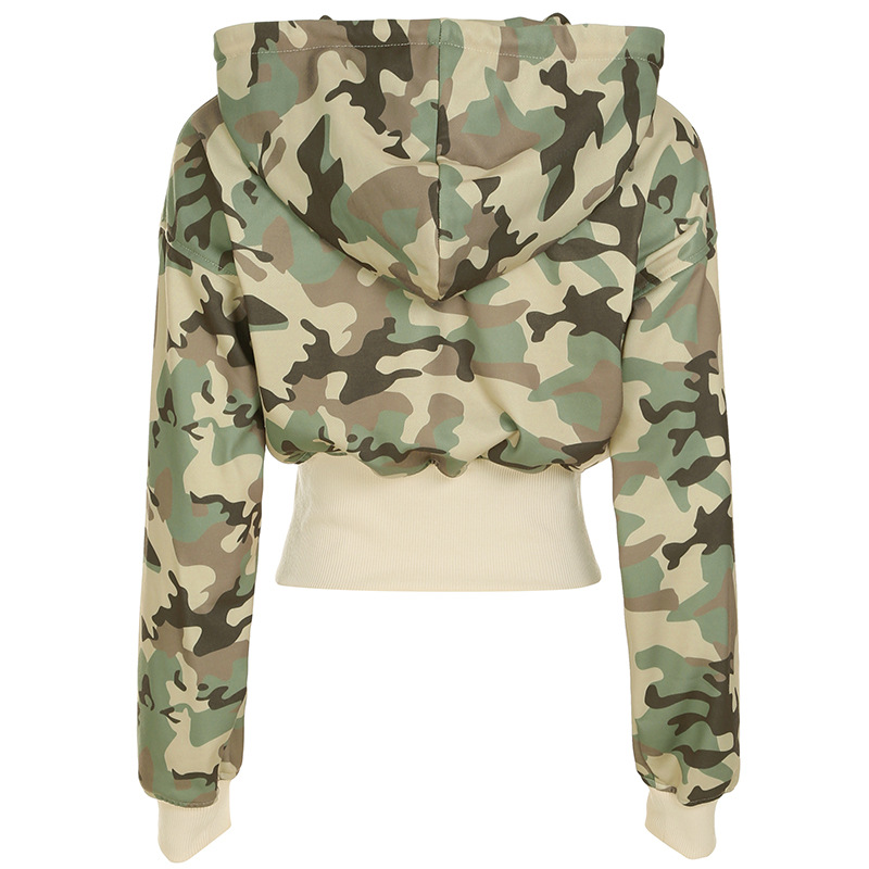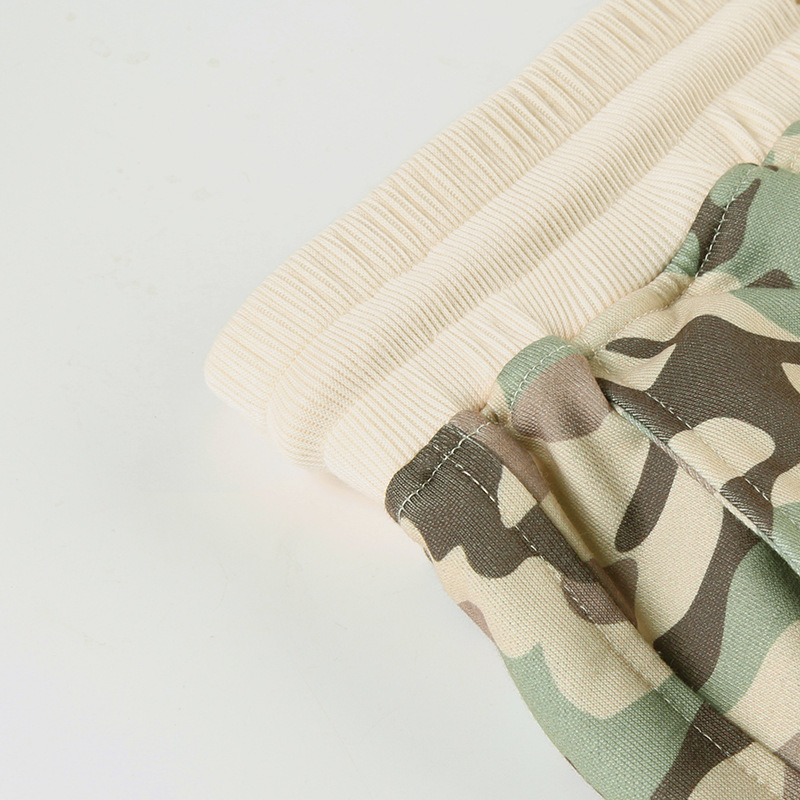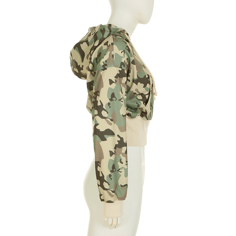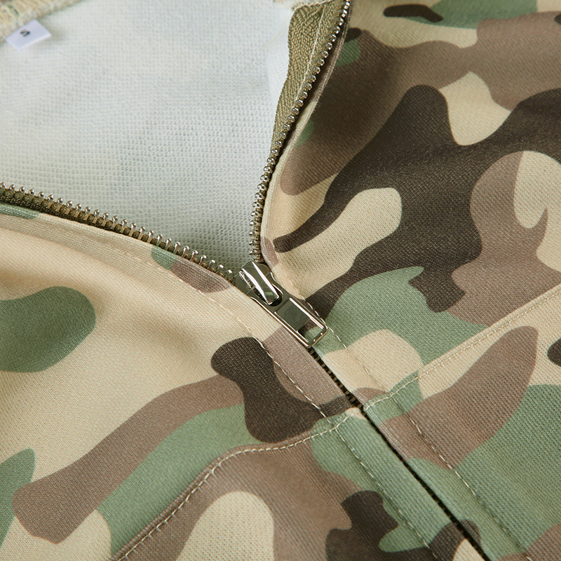 Casual Contrast Color Cinched Hoodie Long Sleeve Sweatshirt Sweatpants Two Piece Camouflage Cardigan Coat Trousers Sets