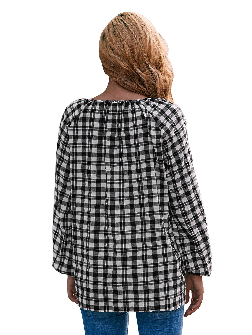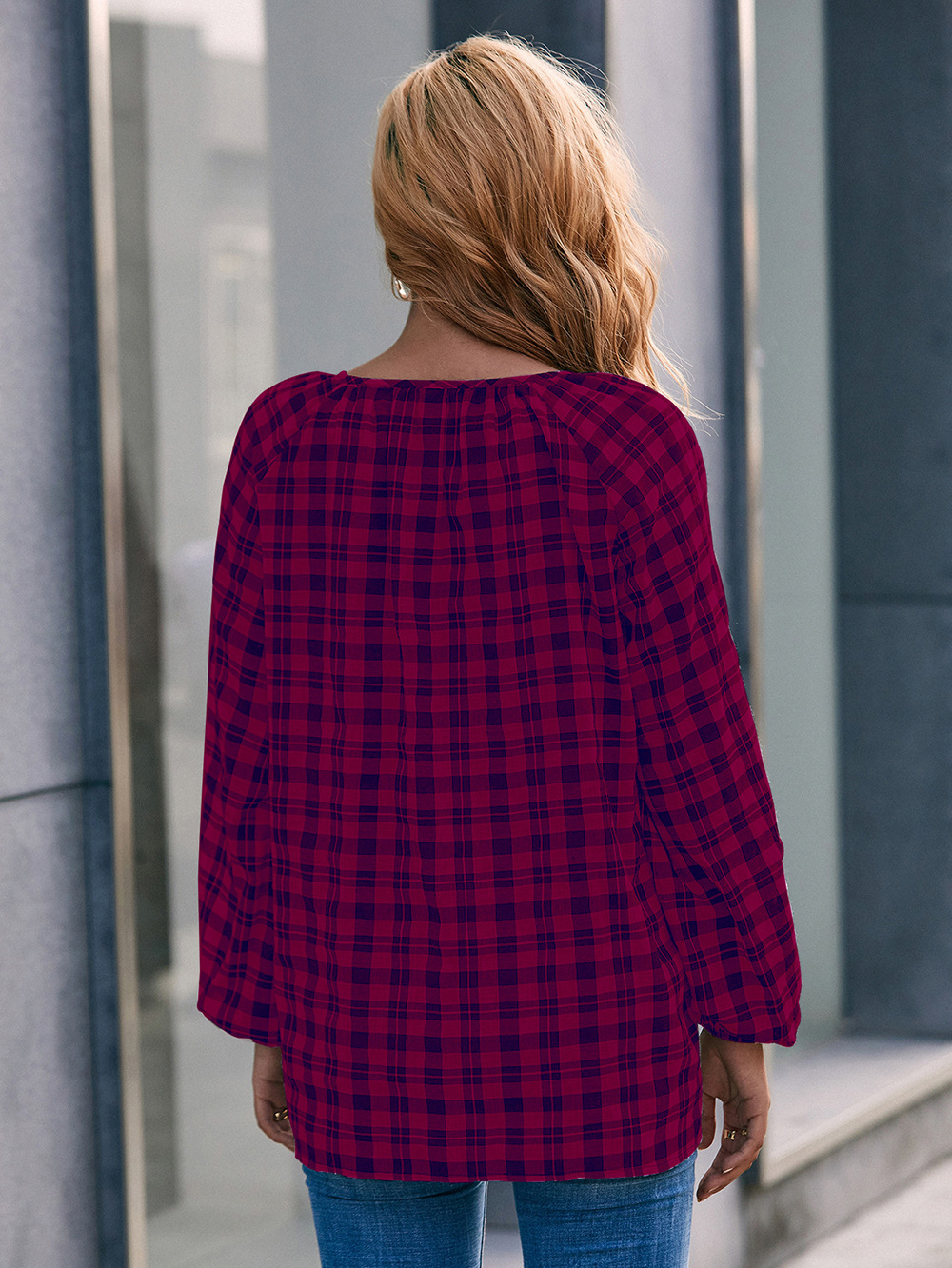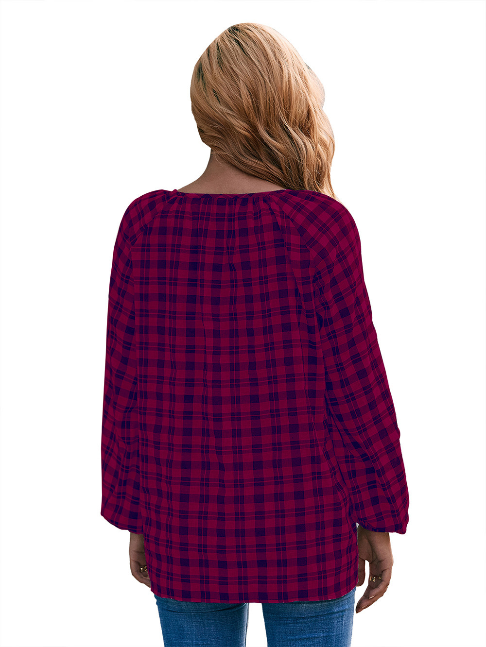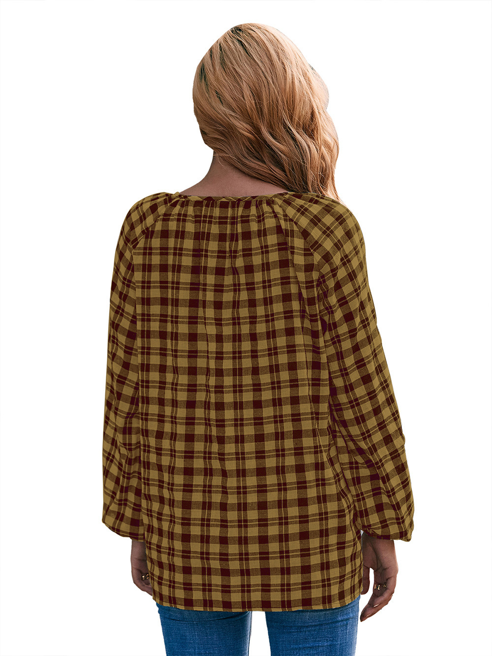 Casual Long Sleeved Plaid V neck Shirt Loose Plaid Overshirt Women