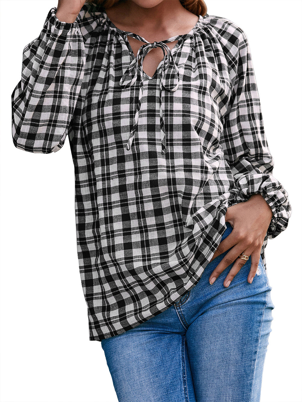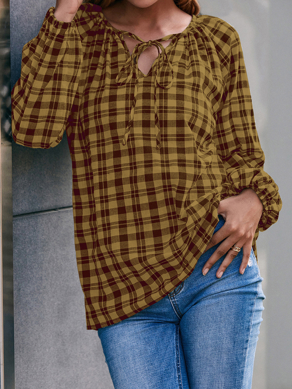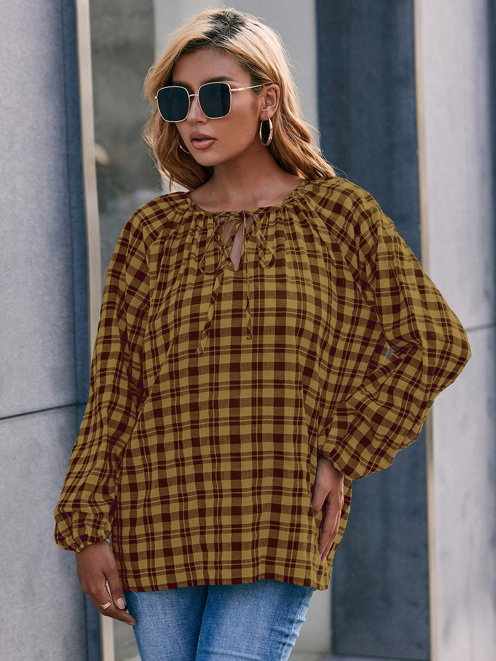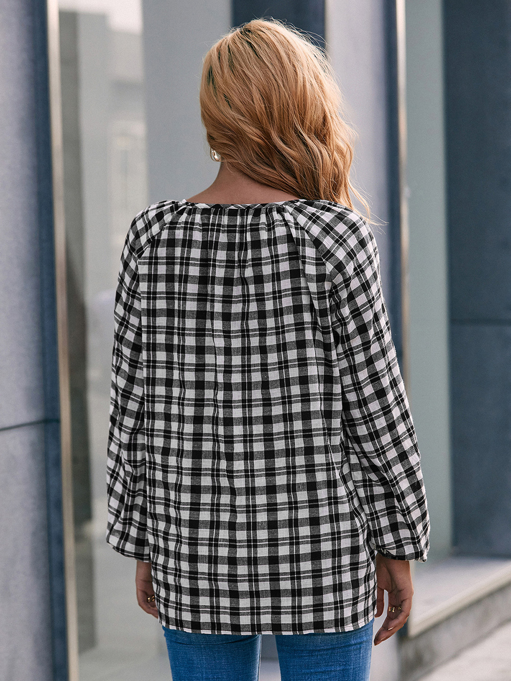 Casual Long Sleeved Plaid V neck Shirt Loose Plaid Overshirt Women