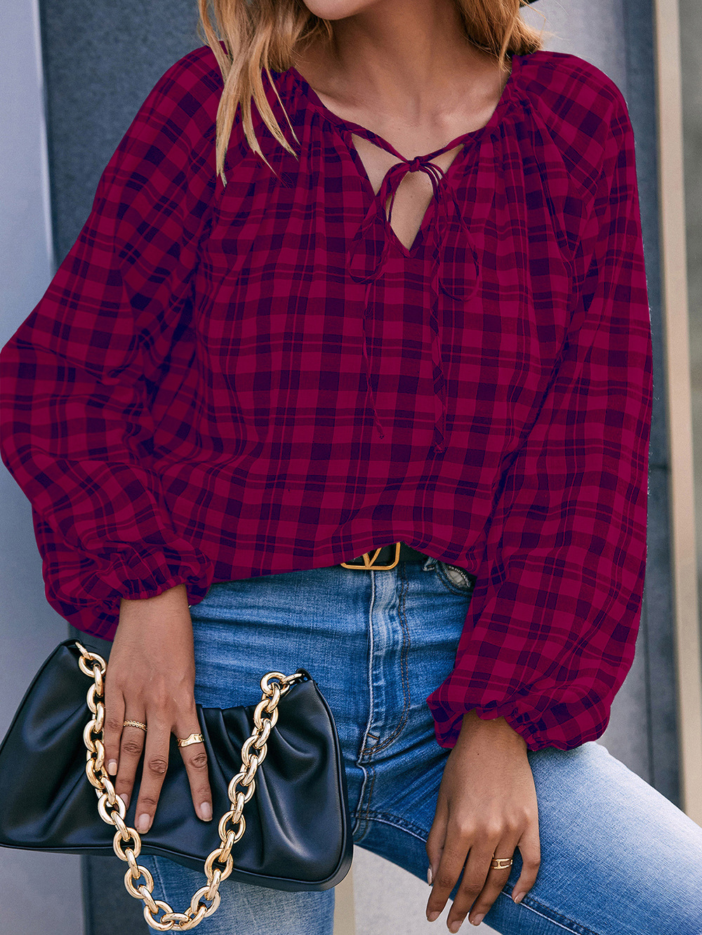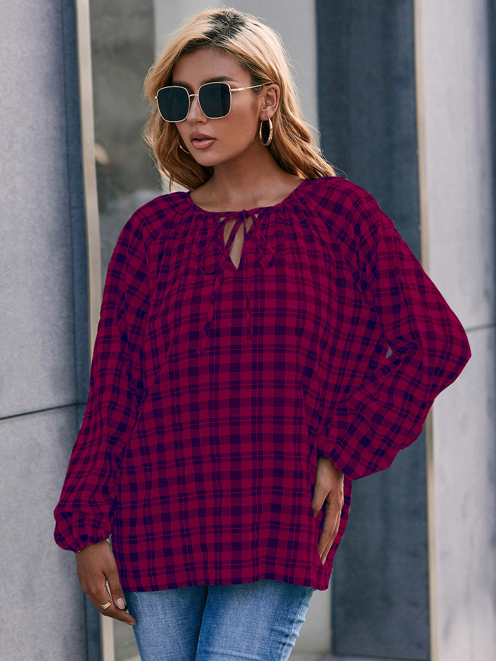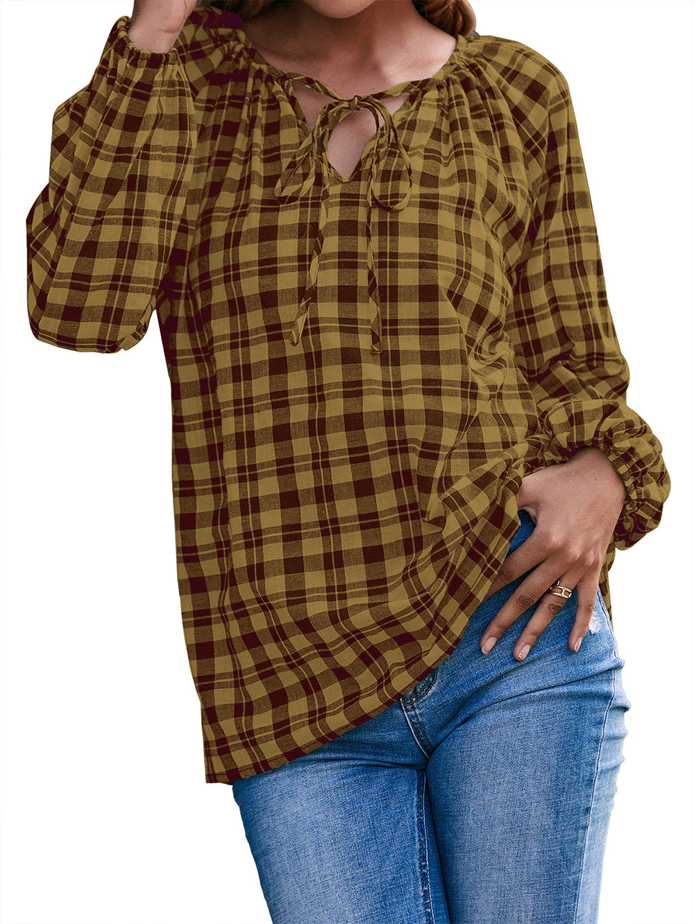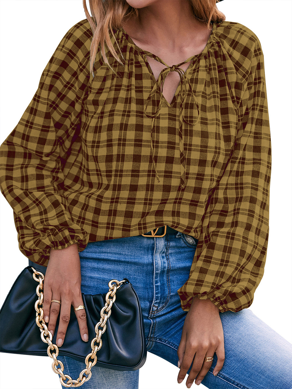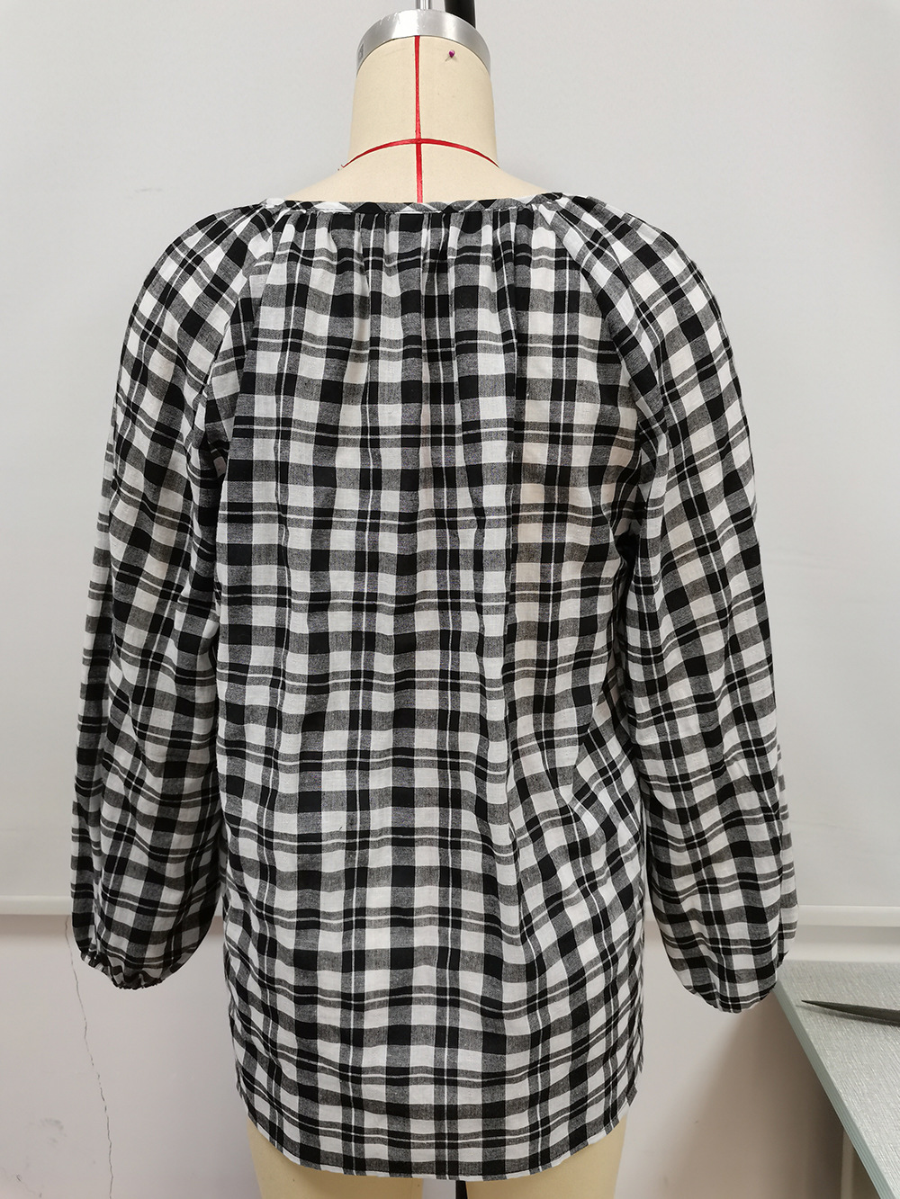 Casual Long Sleeved Plaid V neck Shirt Loose Plaid Overshirt Women