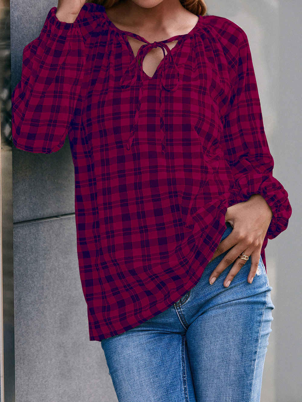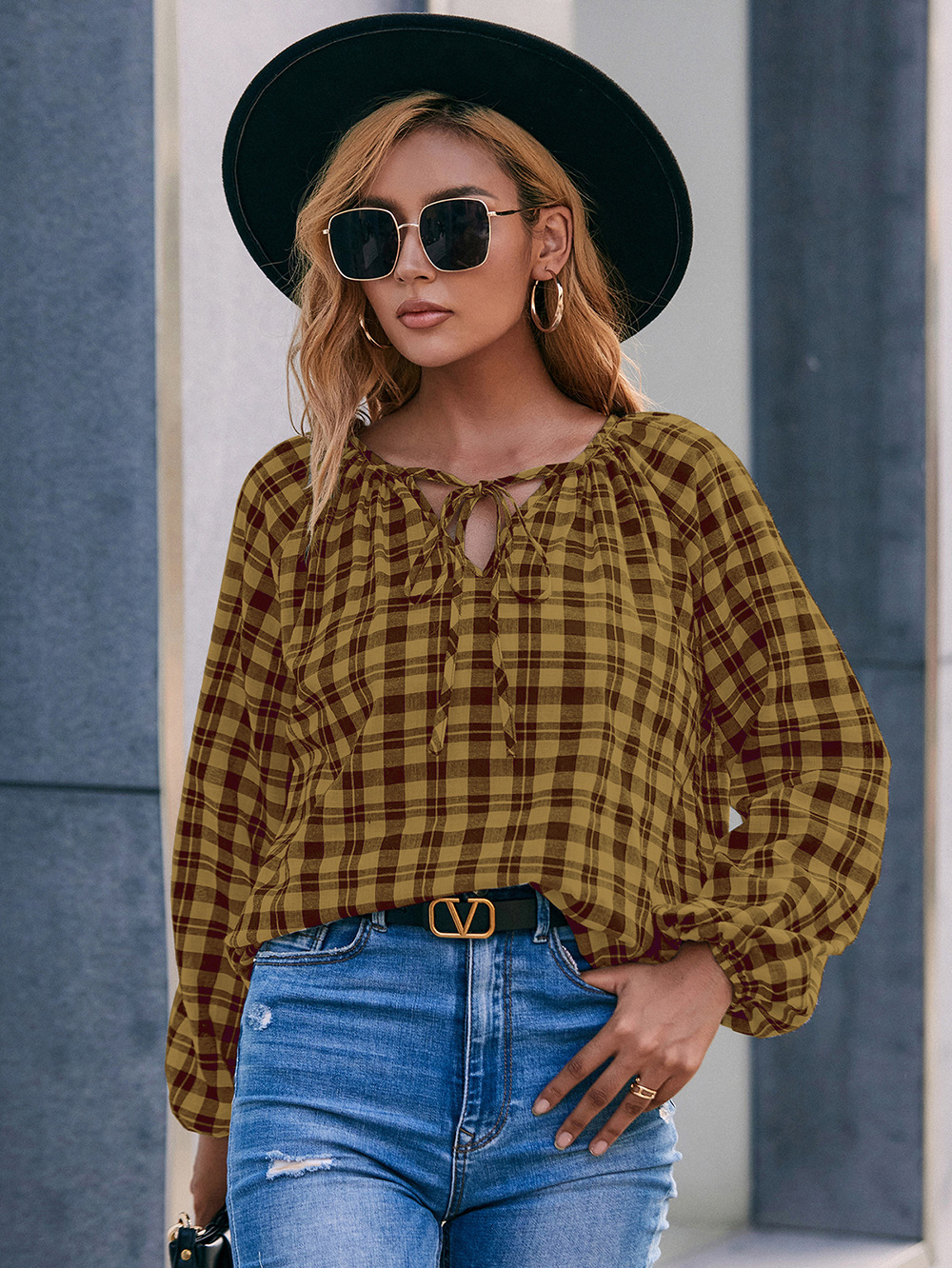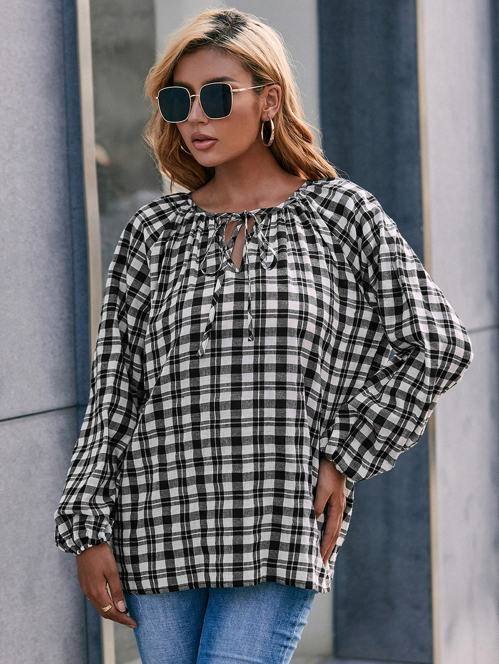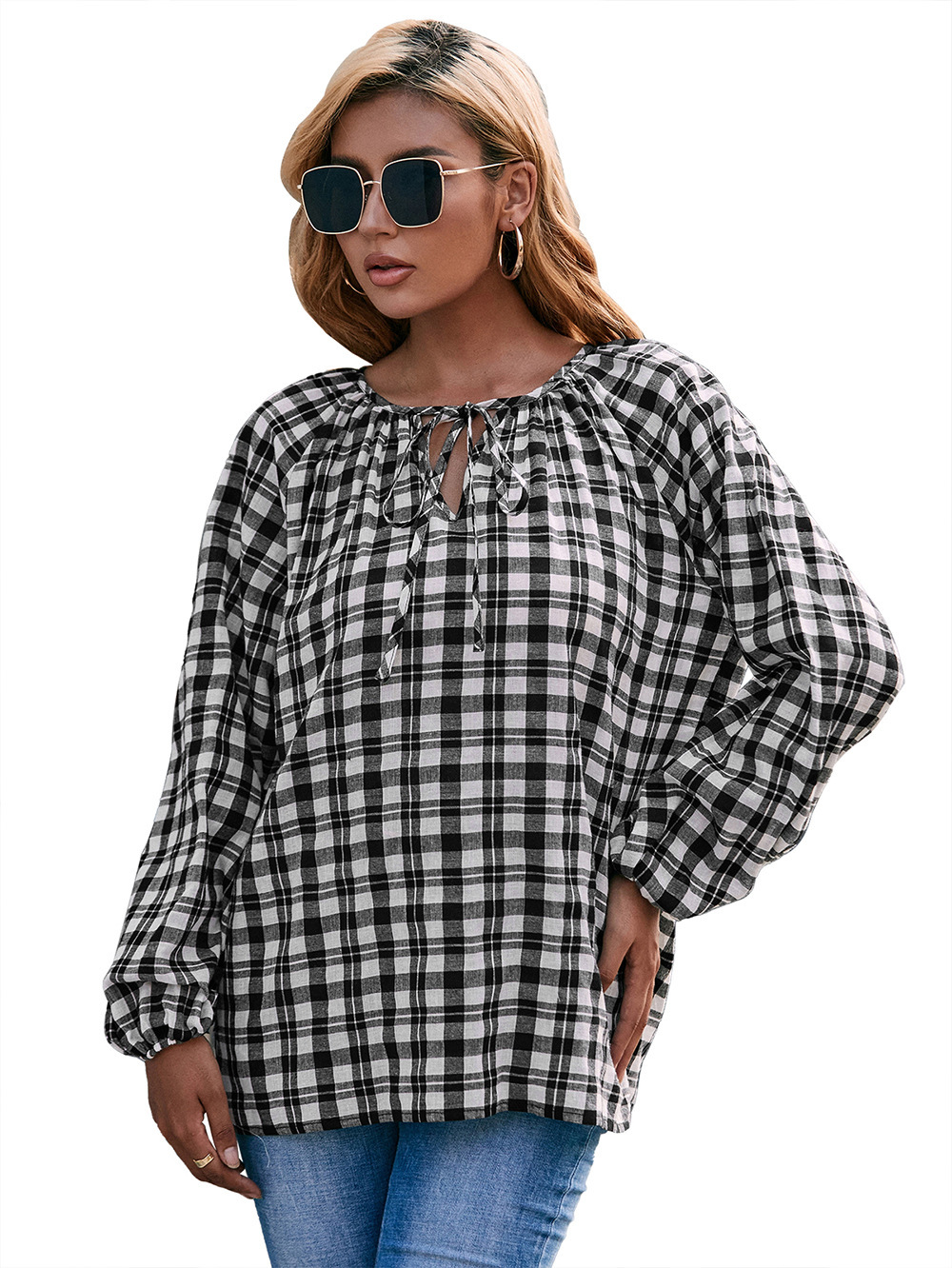 Casual Long Sleeved Plaid V neck Shirt Loose Plaid Overshirt Women