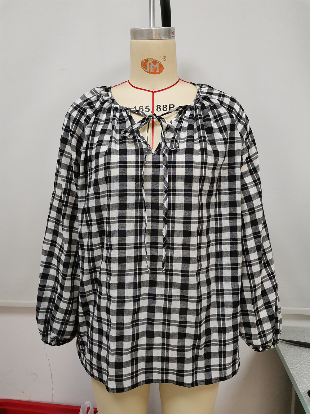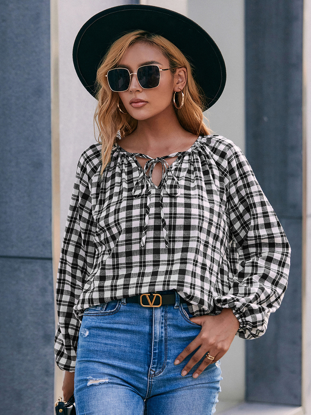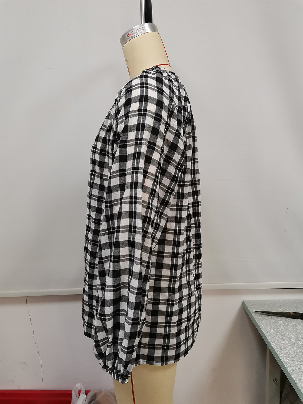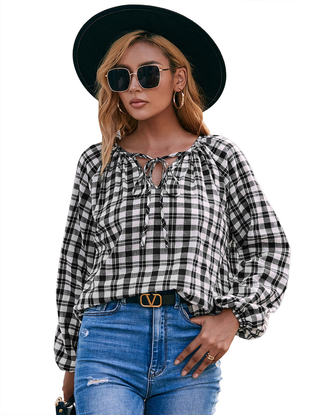 Casual Long Sleeved Plaid V neck Shirt Loose Plaid Overshirt Women
