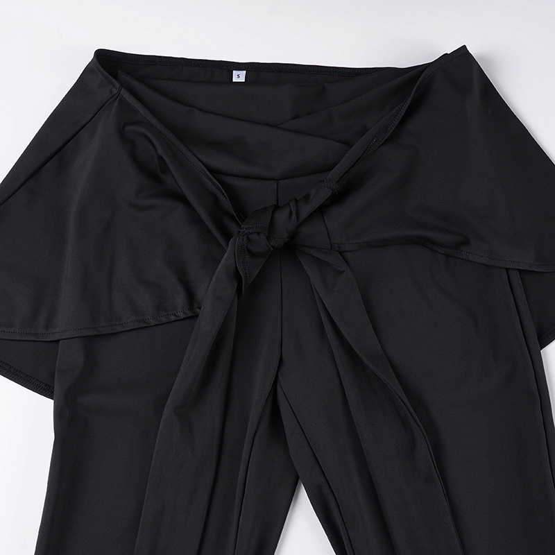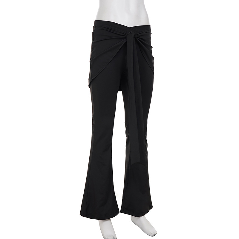 Casual Pilates Sports Solid Color Bootcut Trousers Women Low Waist Lace up Fart Curtain Design Pants