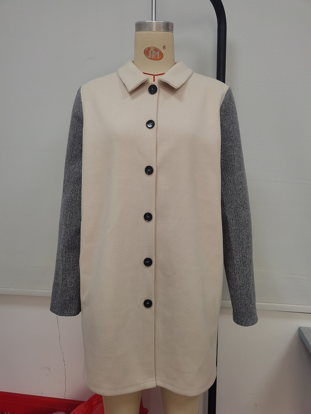 Casual Single Breasted Color Matching Trench Coat Office Contrast Color Top Women