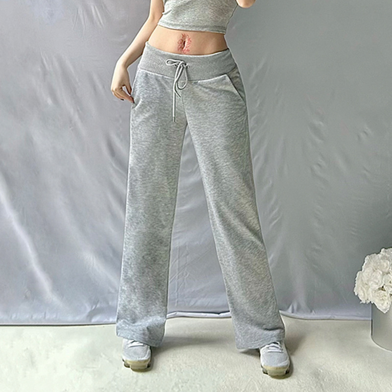 Casual Street Loose Sweatpants Elastic Wide Waist Head Drawstring Patchwork Pocket Straight Leg Pants Trousers Spring Summer