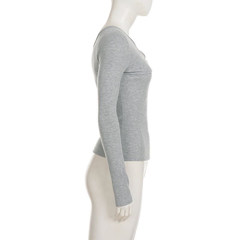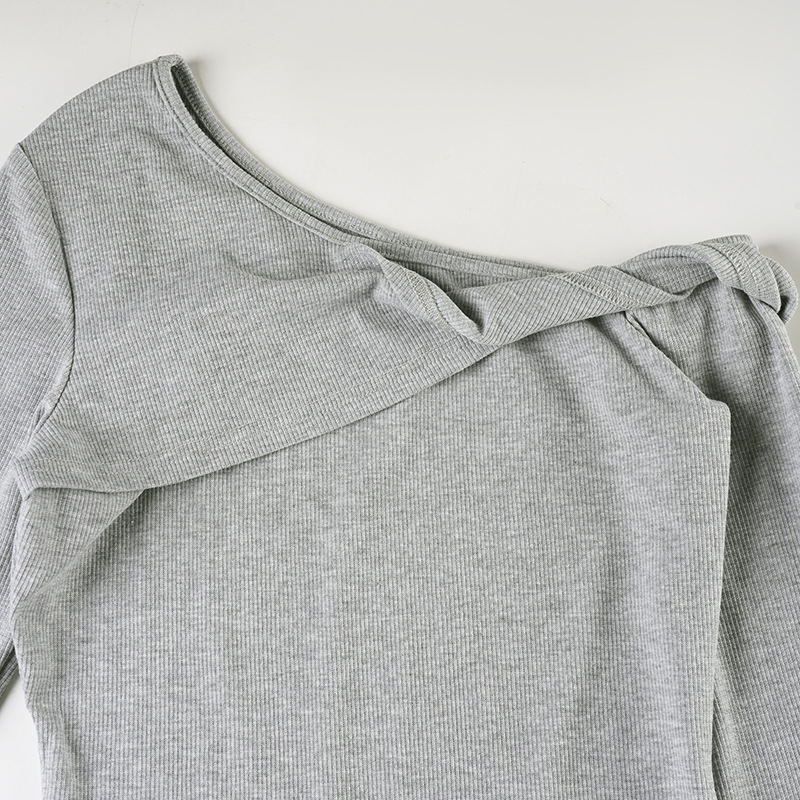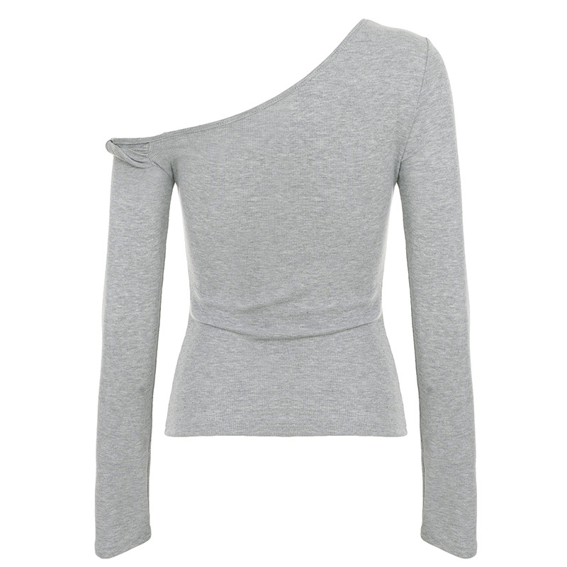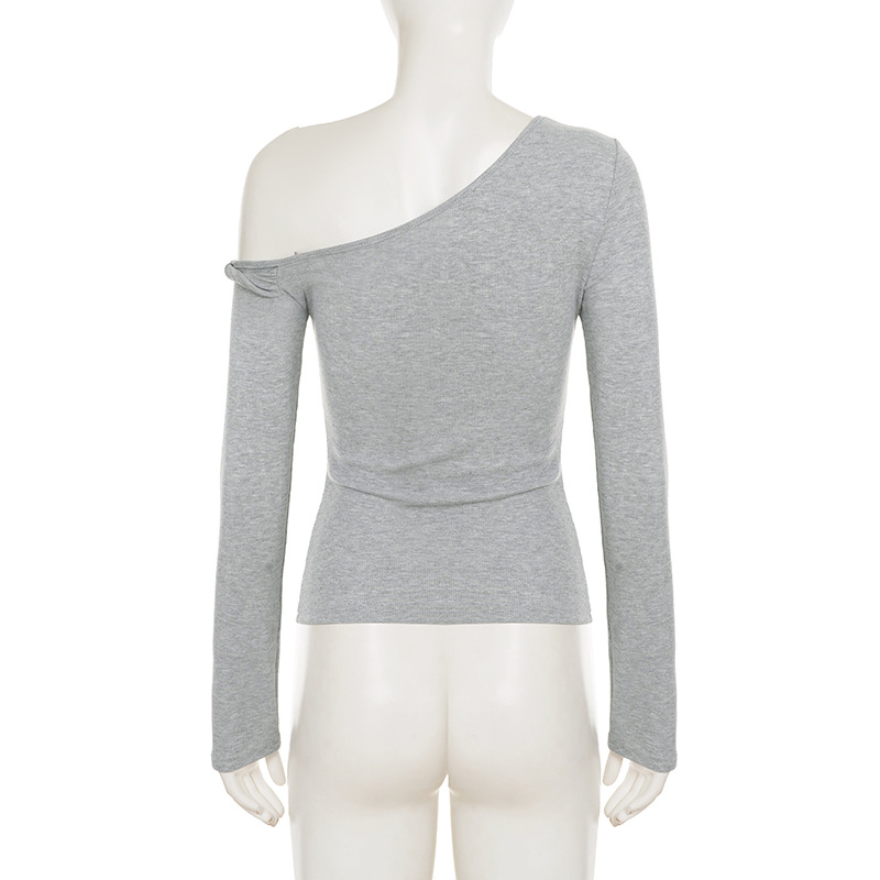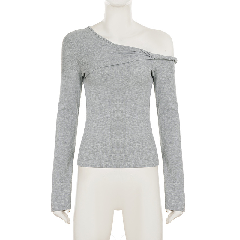 Casual Street Sports Kinky Diagonal Collar Long Sleeved Doublet Solid Color All Matching Elegant Bottoming Shirt T shirt