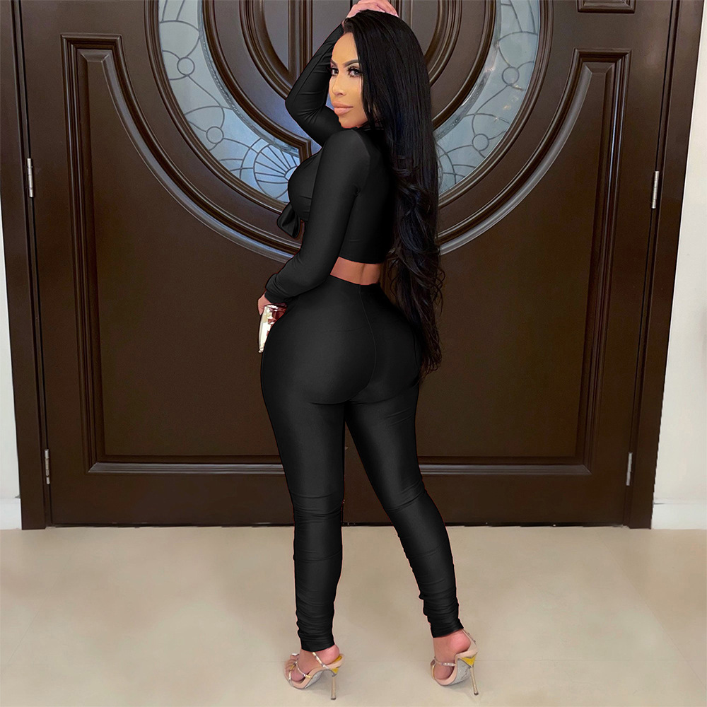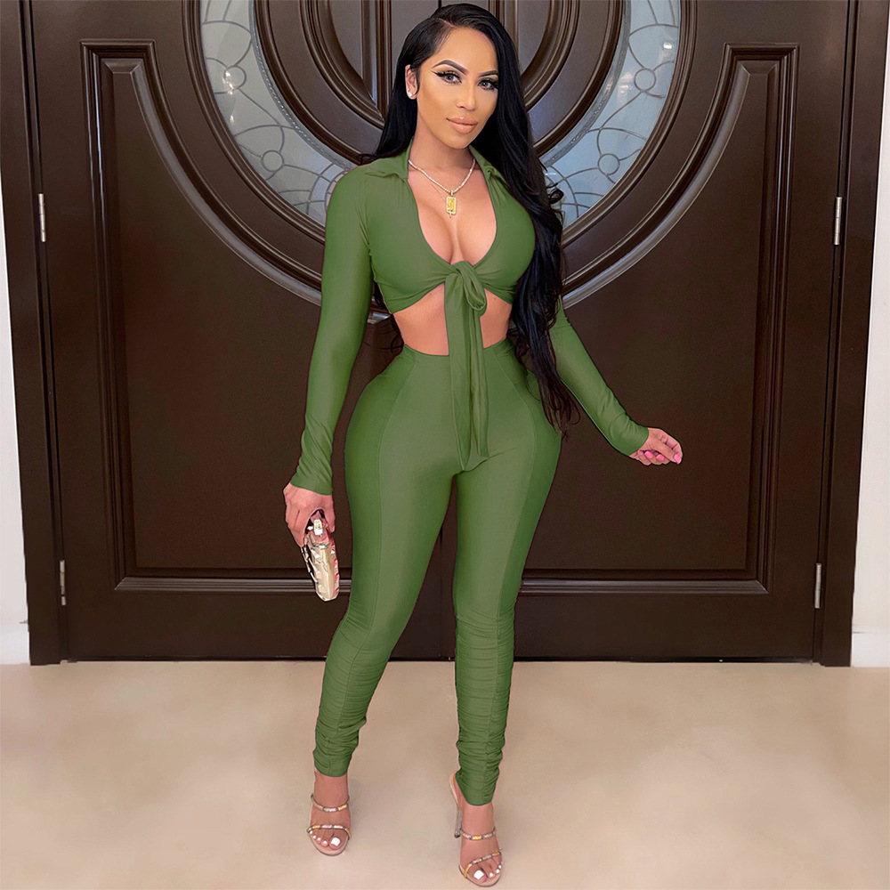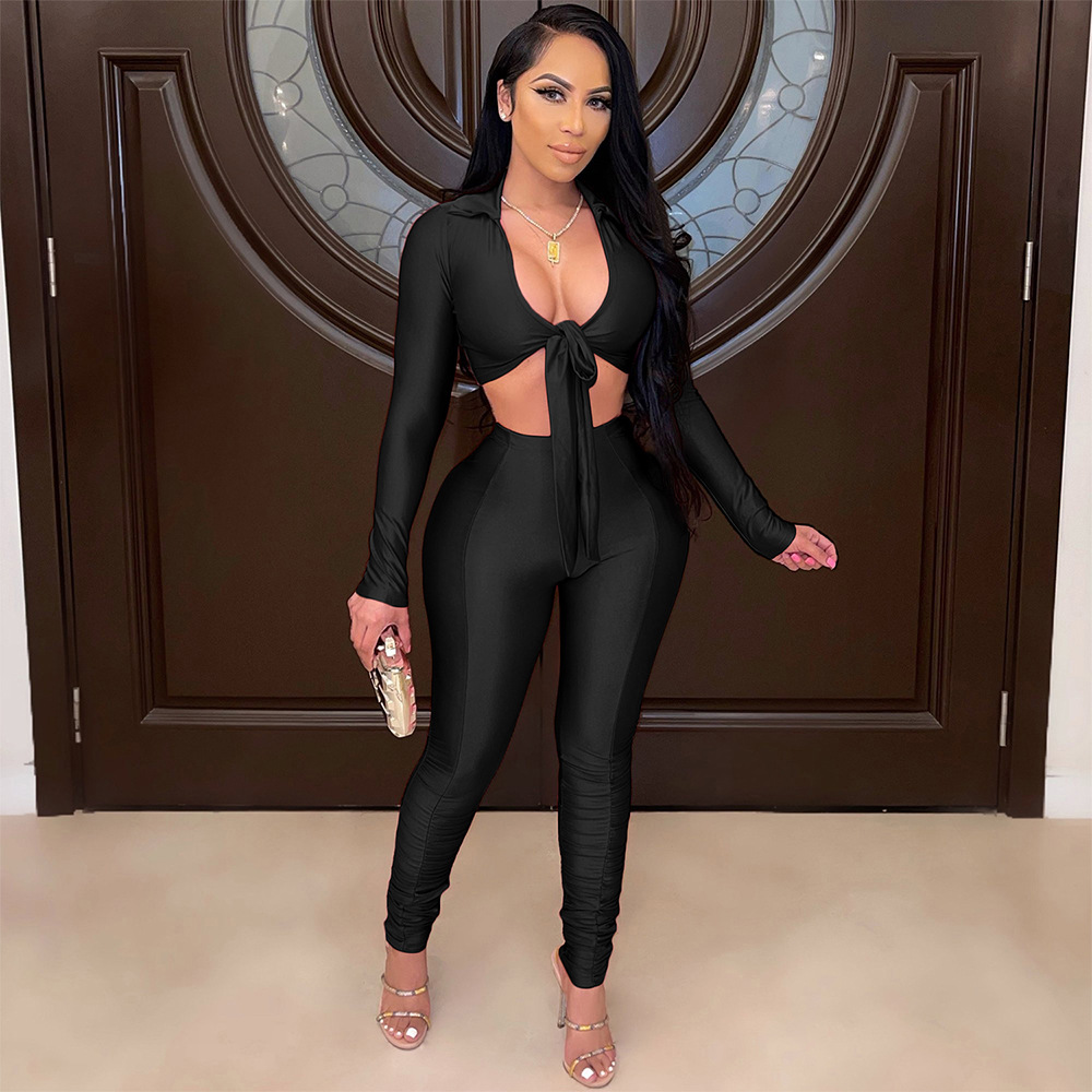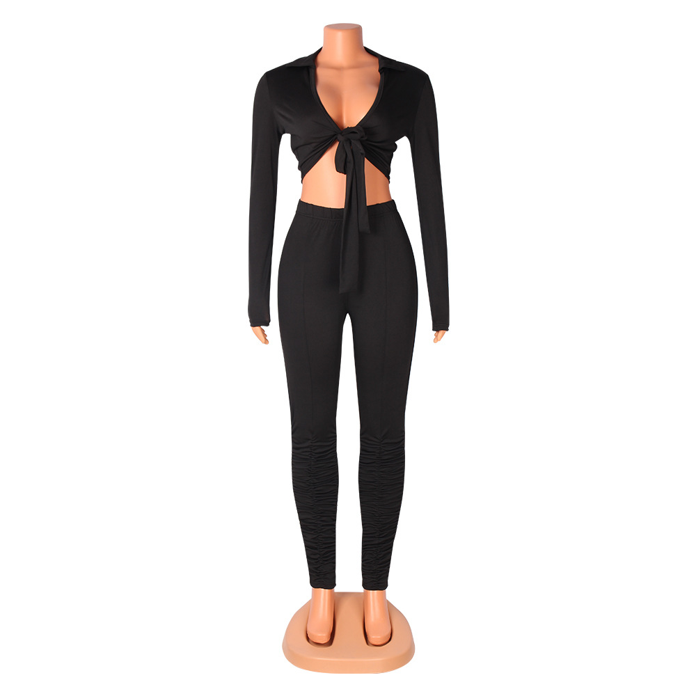 Casual Tight Two Piece Cardigan Bow Long Sleeve Trousers Suit Women