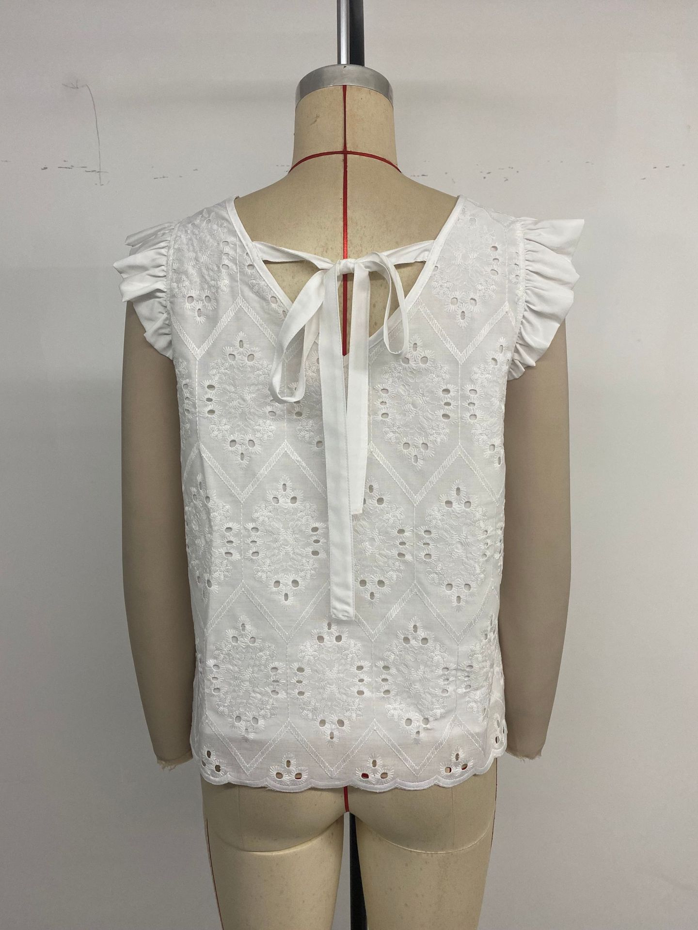 Casual Vacation Pastoral Back Bow Ruffled Sleeveless Shirt