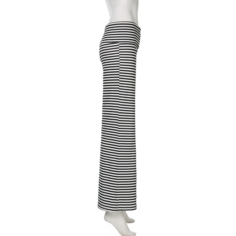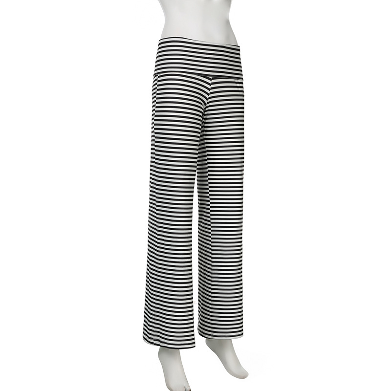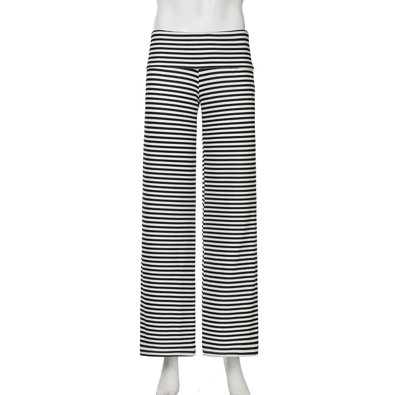 Casual Women Clothing Turn over Waist Striped Color Matching Straight Wide Leg Pants Home Comfortable Loose Trousers
