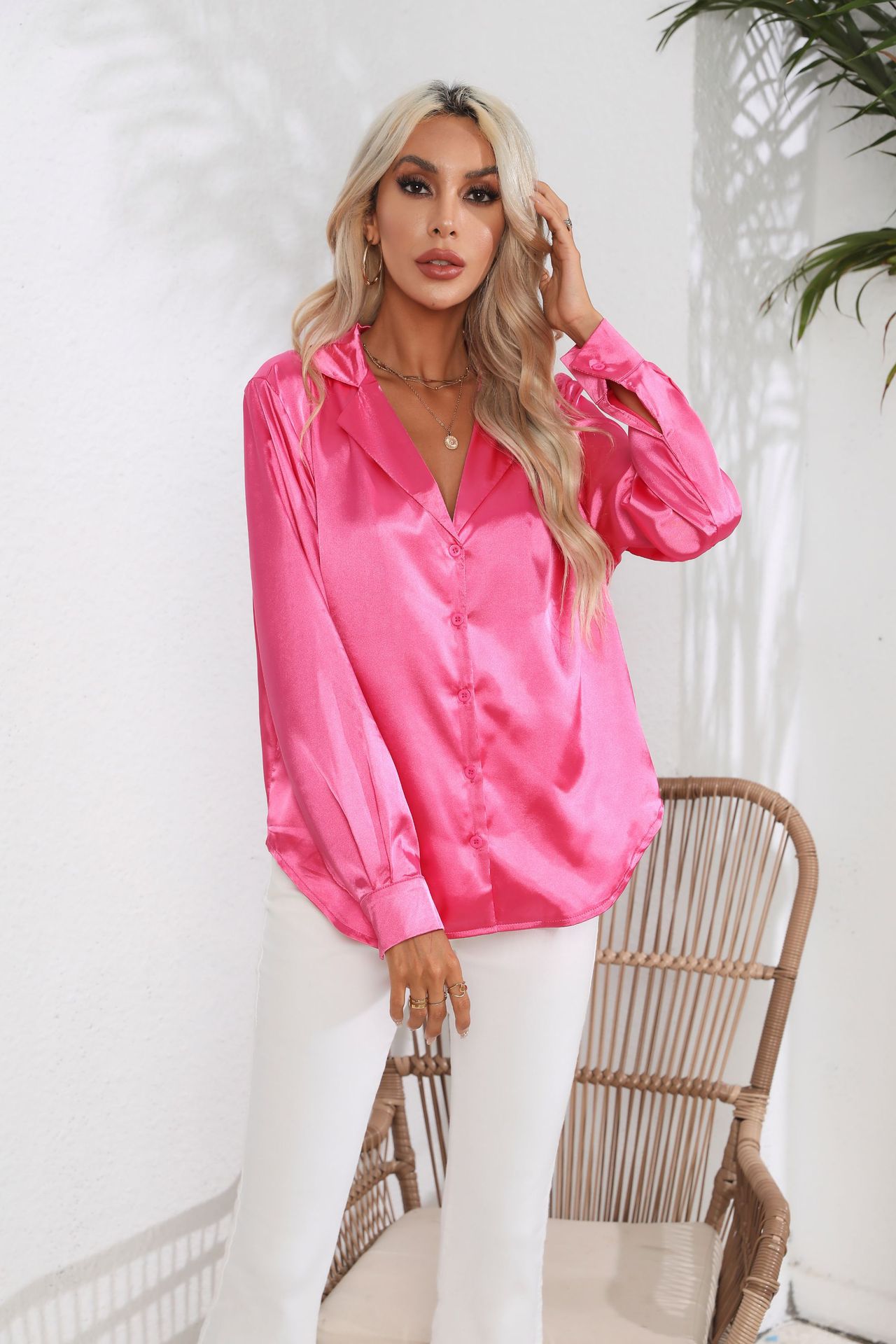 Collar Satin Shirt Women Satin Artificial Silk Long Sleeve Shirt Women Clothing
