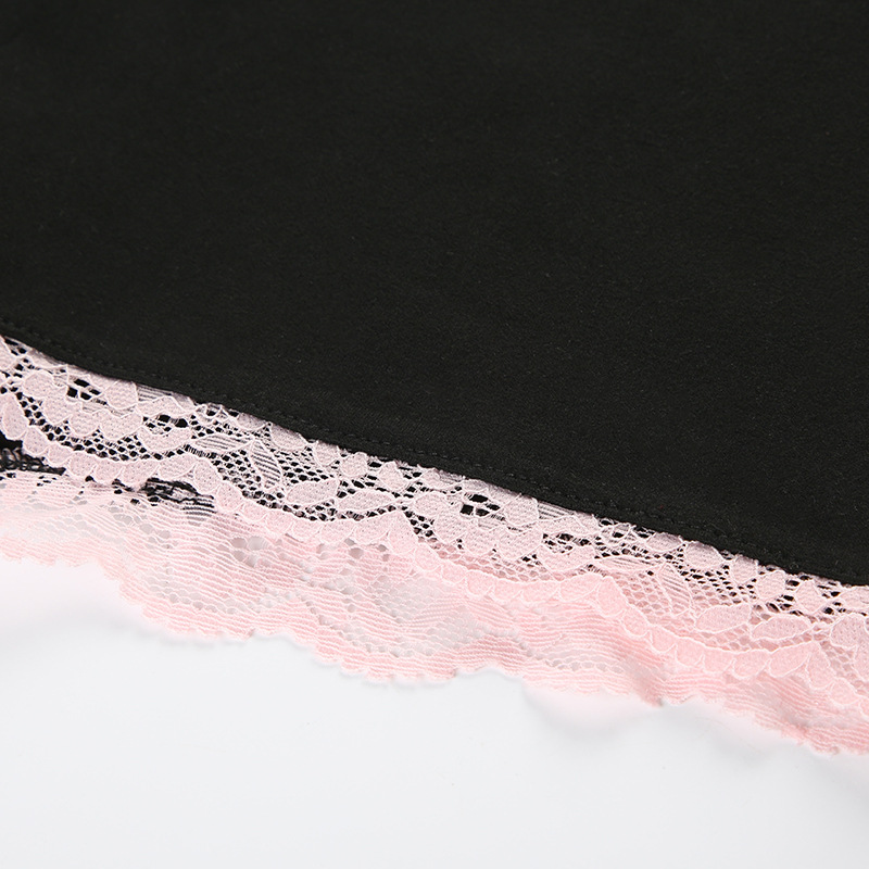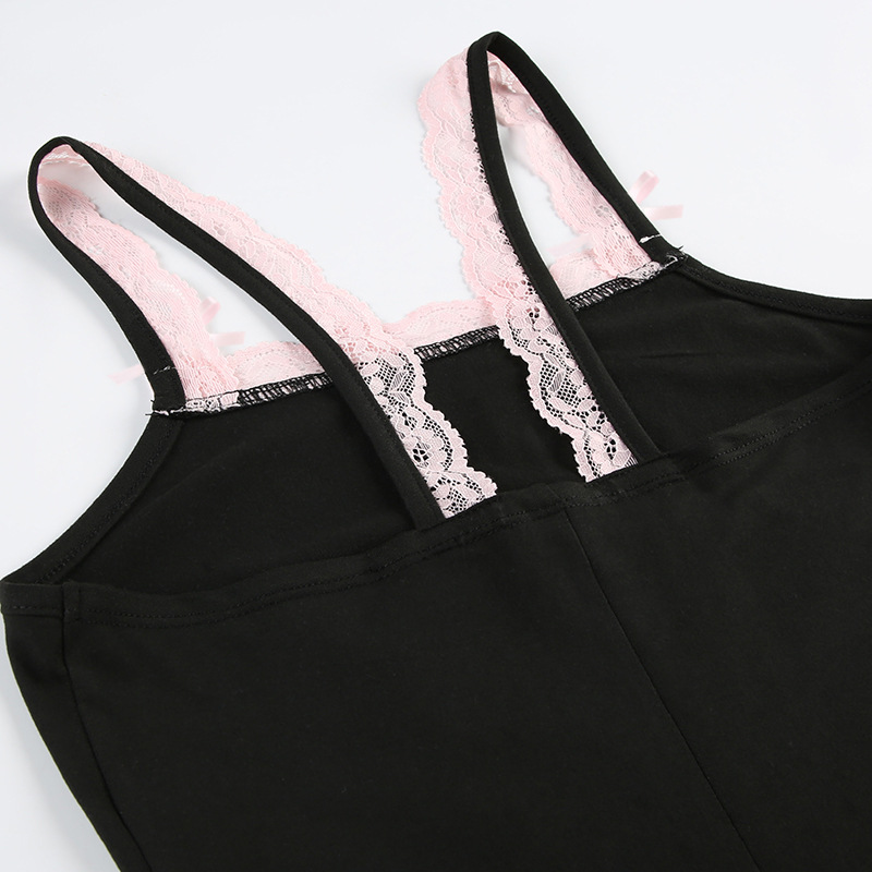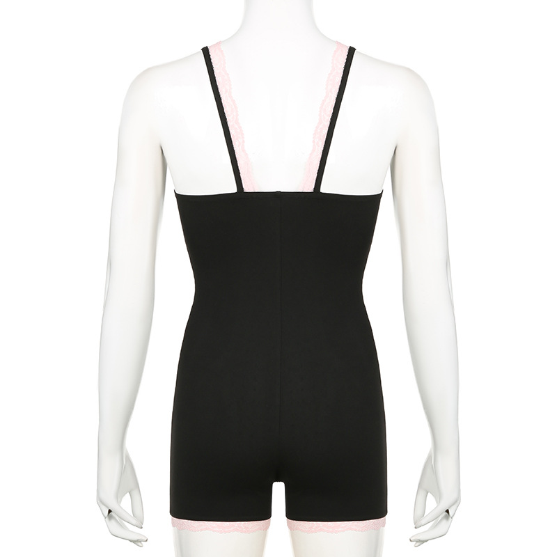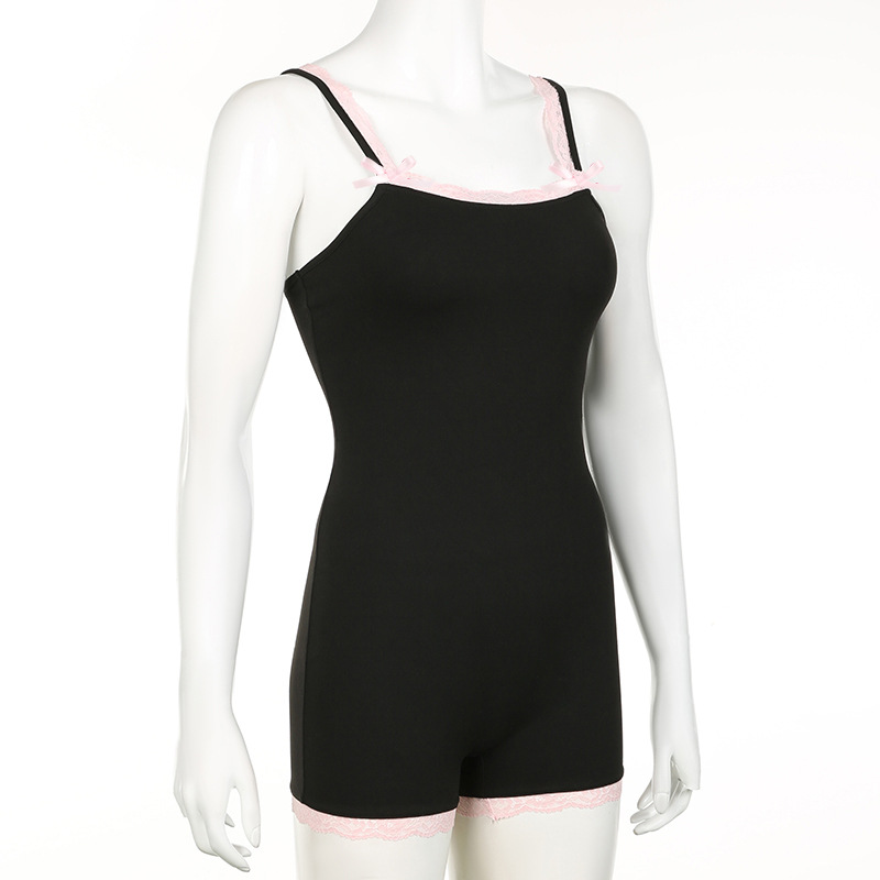 Contrast Color Lace Girl Sling Jumpsuit Summer Holiday Bow Stitching Square Collar Jumpsuit Shorts