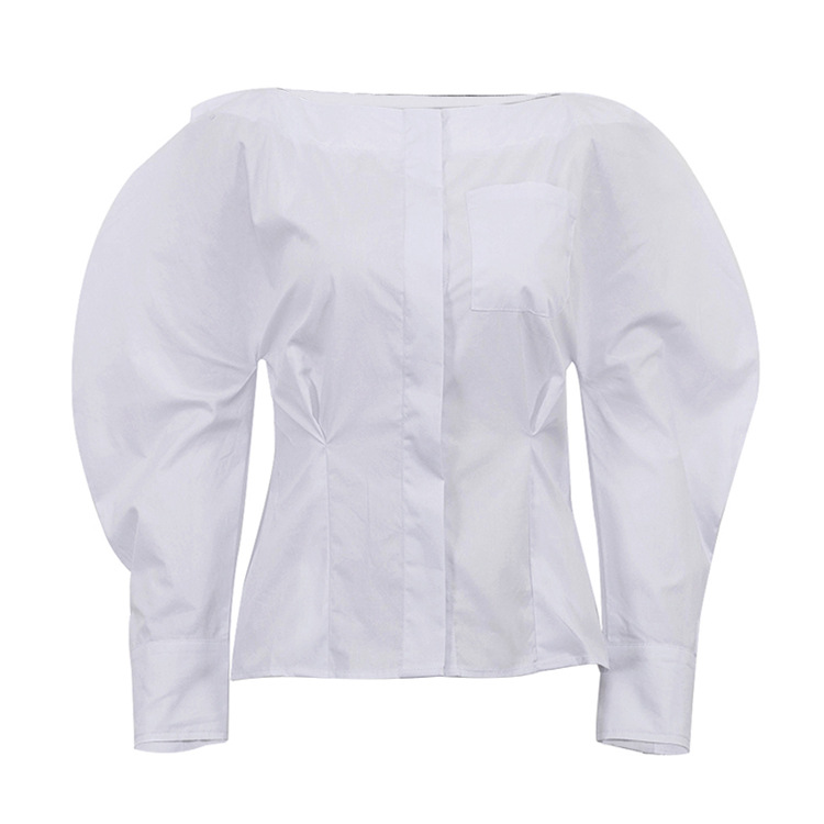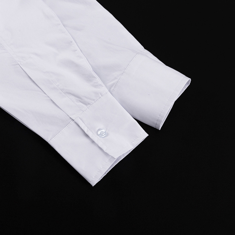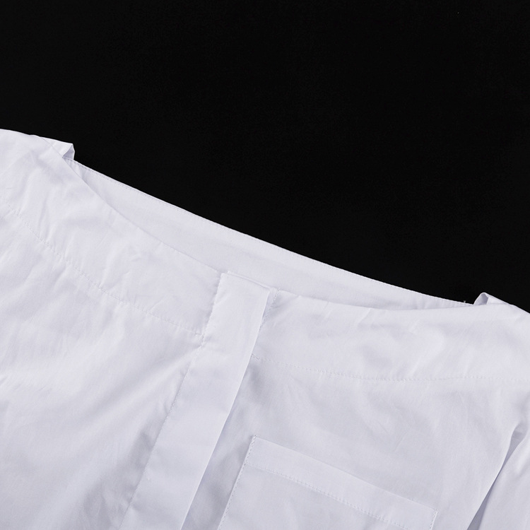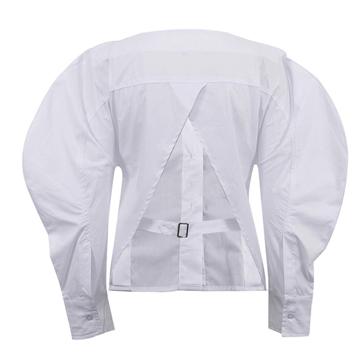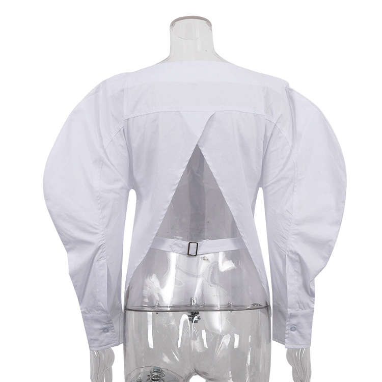 Cotton White Shirt Women Niche Cross Design Long Sleeve Fitted Waist Backless Cardigan off Neck Shirt