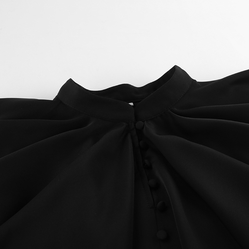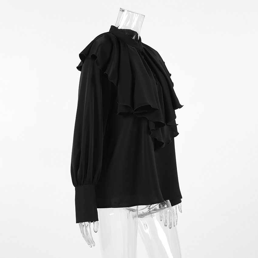 Court French Ruffled Stand Collar Single Breasted Long Sleeve Shirt Women French Lantern Sleeve Loose Solid Color Top