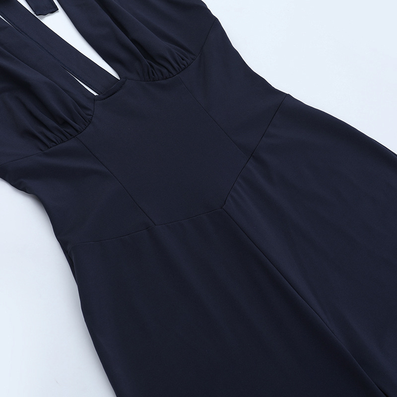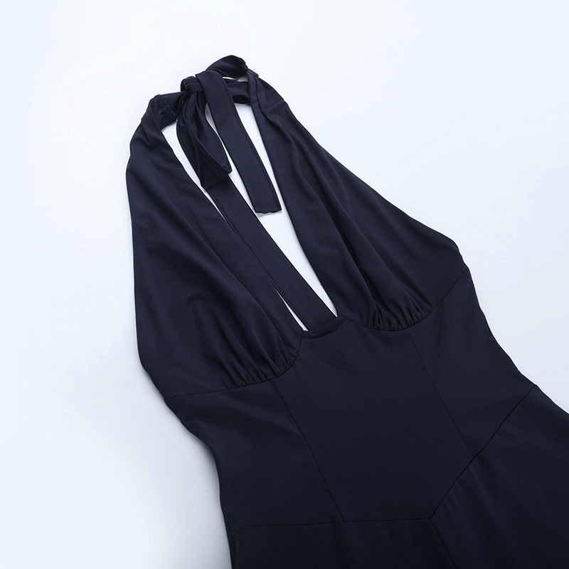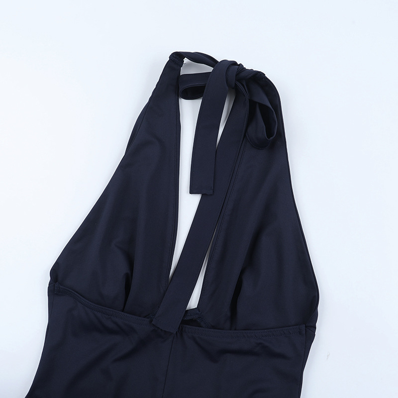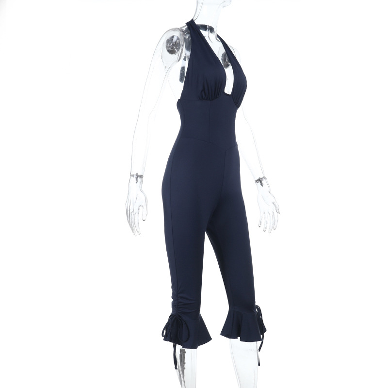 Deep V Plunge Sexy Vest Jumpsuit Autumn Solid Color Sleeveless Halter Jumpsuit