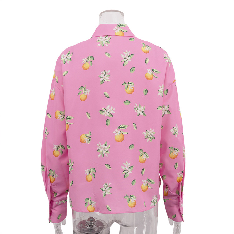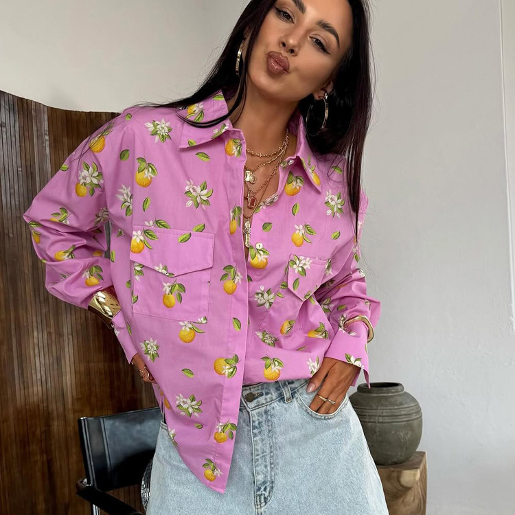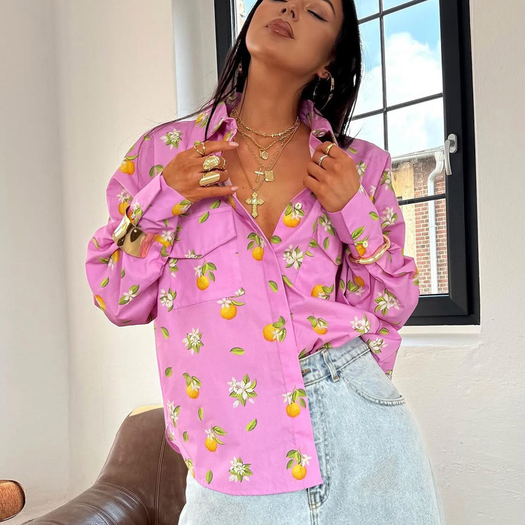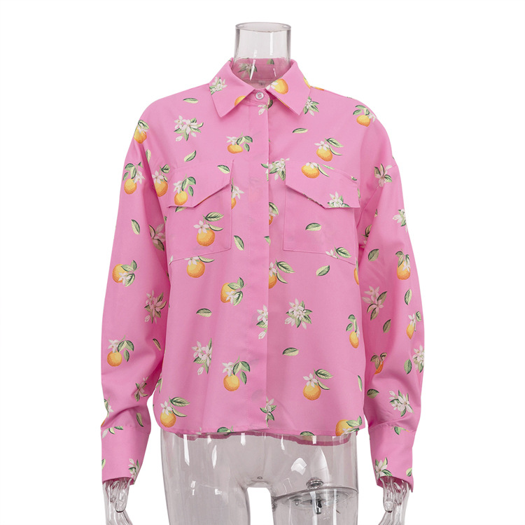 Digital Printing Casual Women Shirt Spring Autumn Polo Collar Long Sleeve All Matching Cardigan Top