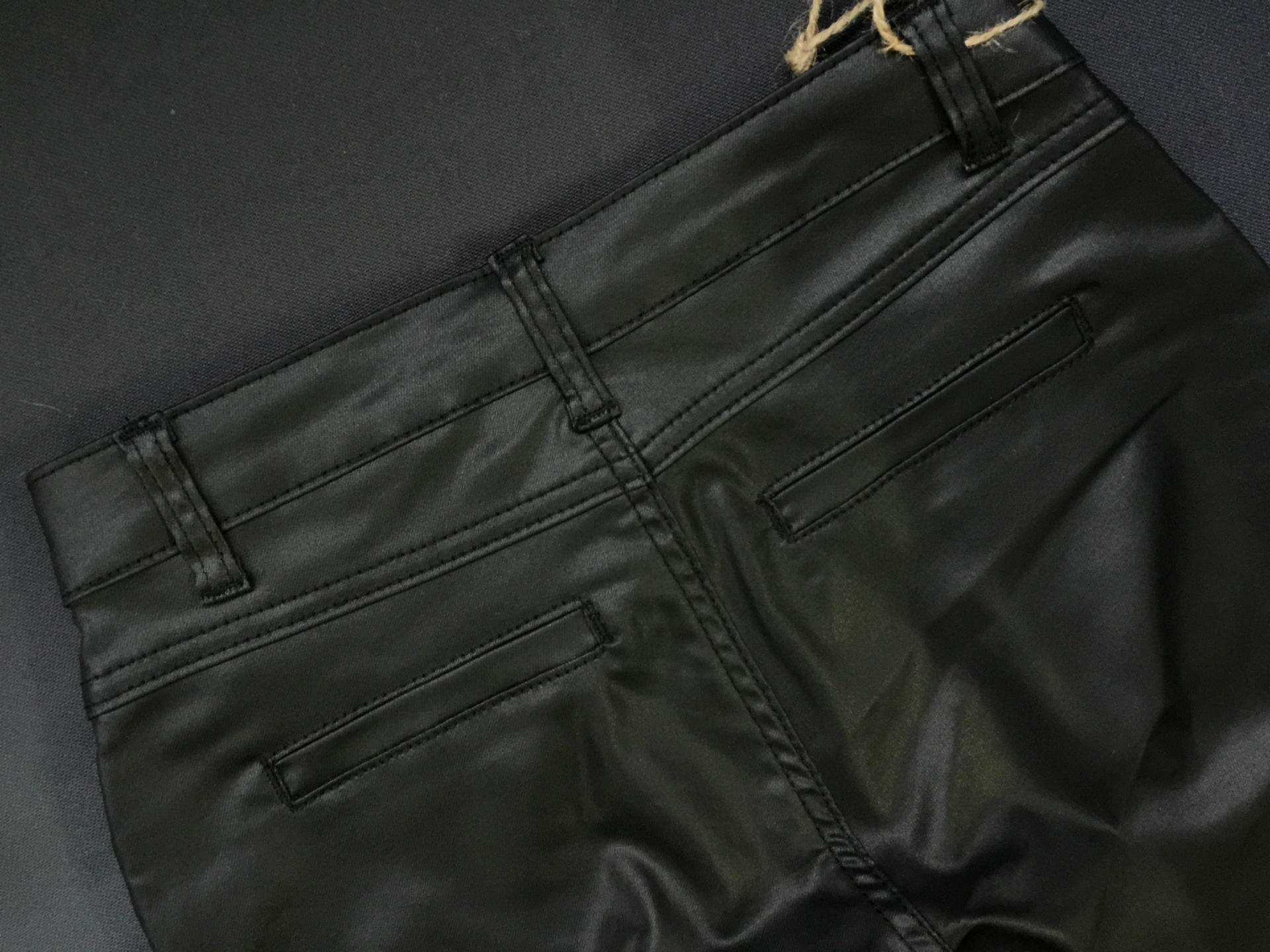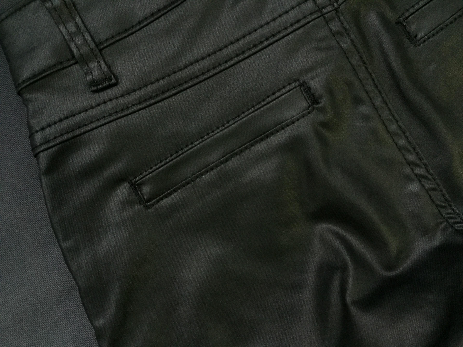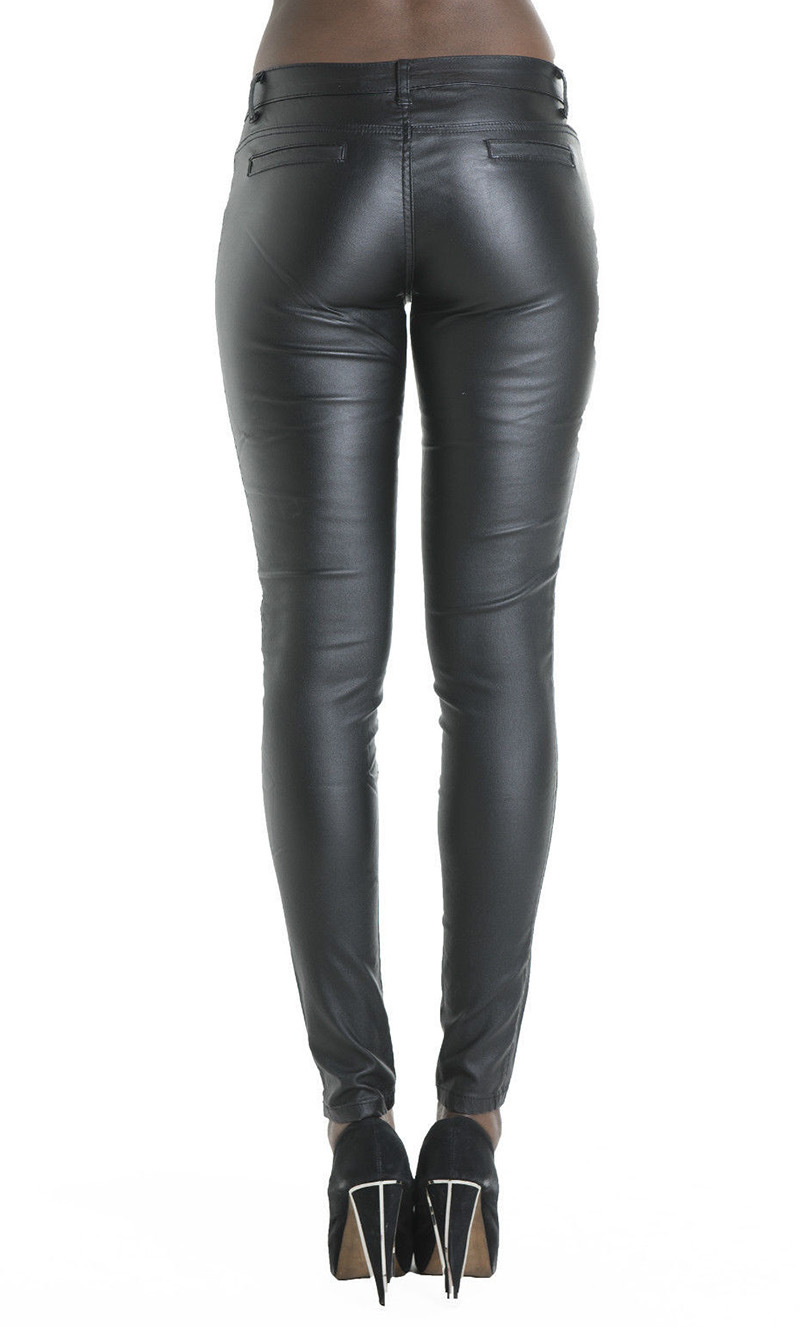 Fall Winter Popular Black Low Waist Coating Denim Skinny Pants Faux Leather Pants